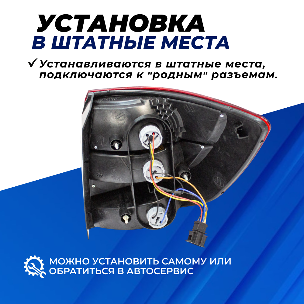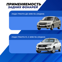 Задние фонари Гранта предоставят полноценный уровень безопасности для других водителей, передвигающихся сзади, и комфорта во время процесса управления авто, с помощью абсолютно безотказного функционирования на протяжение максимально продолжительного срока по эксплуатации. Задние фонари Гранта устанавливаются в штатные места, подключаются к "родным" разъемам.