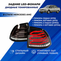 Задние фонари Приора 2 диодные тюнинг в стиле Mercedes AMG комплект левый, правый фонарь тонированные специально разработанные для автомобилей Лада Приора 2 и Лада Приора. Амг задние фонари Лада Приора 2 (левый и правый) добавят вашей машине элегантности, стиля и функциональности, сделав ее неповторимой на дороге.