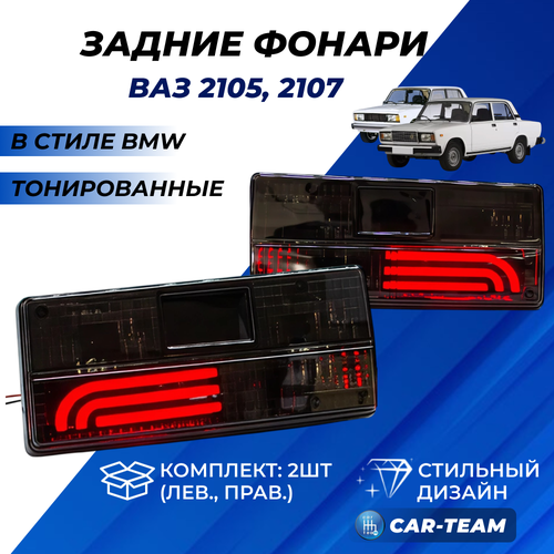 Цена указана за Фонари ВАЗ 2107, 2105 в стиле БМВ полностью тонированные, полоса хрусталь, комплект задние тюнинг фонари 2 шт.