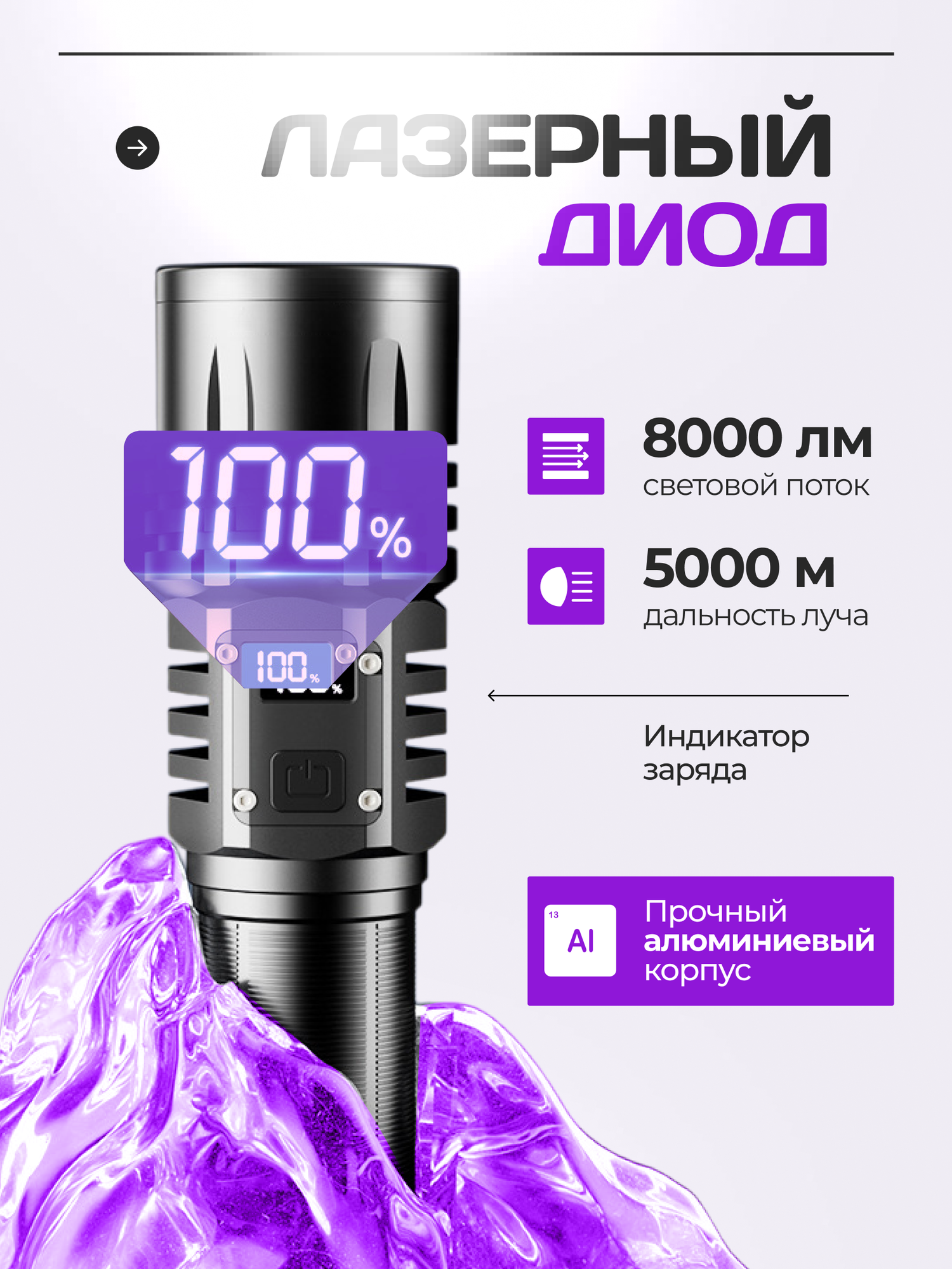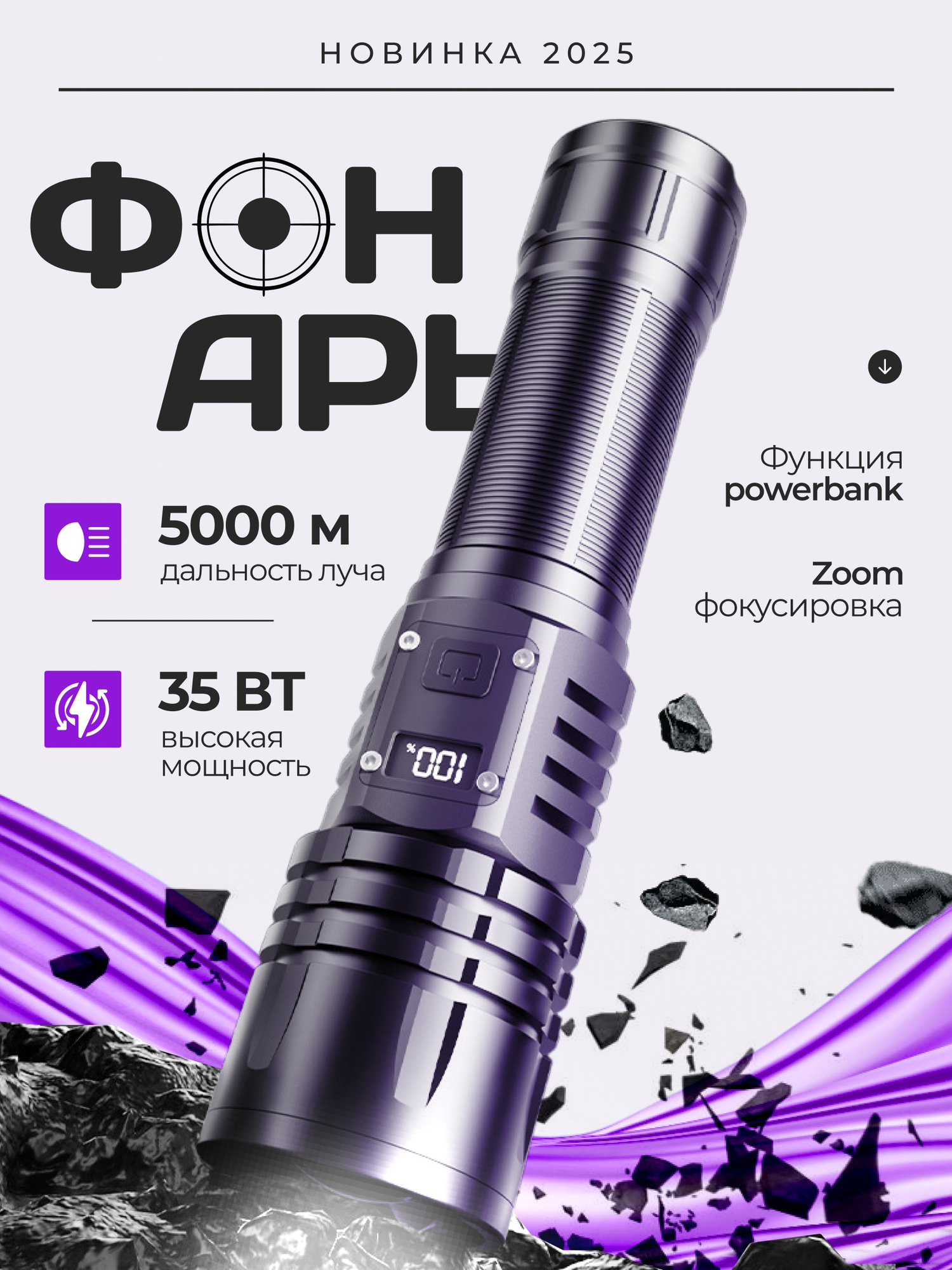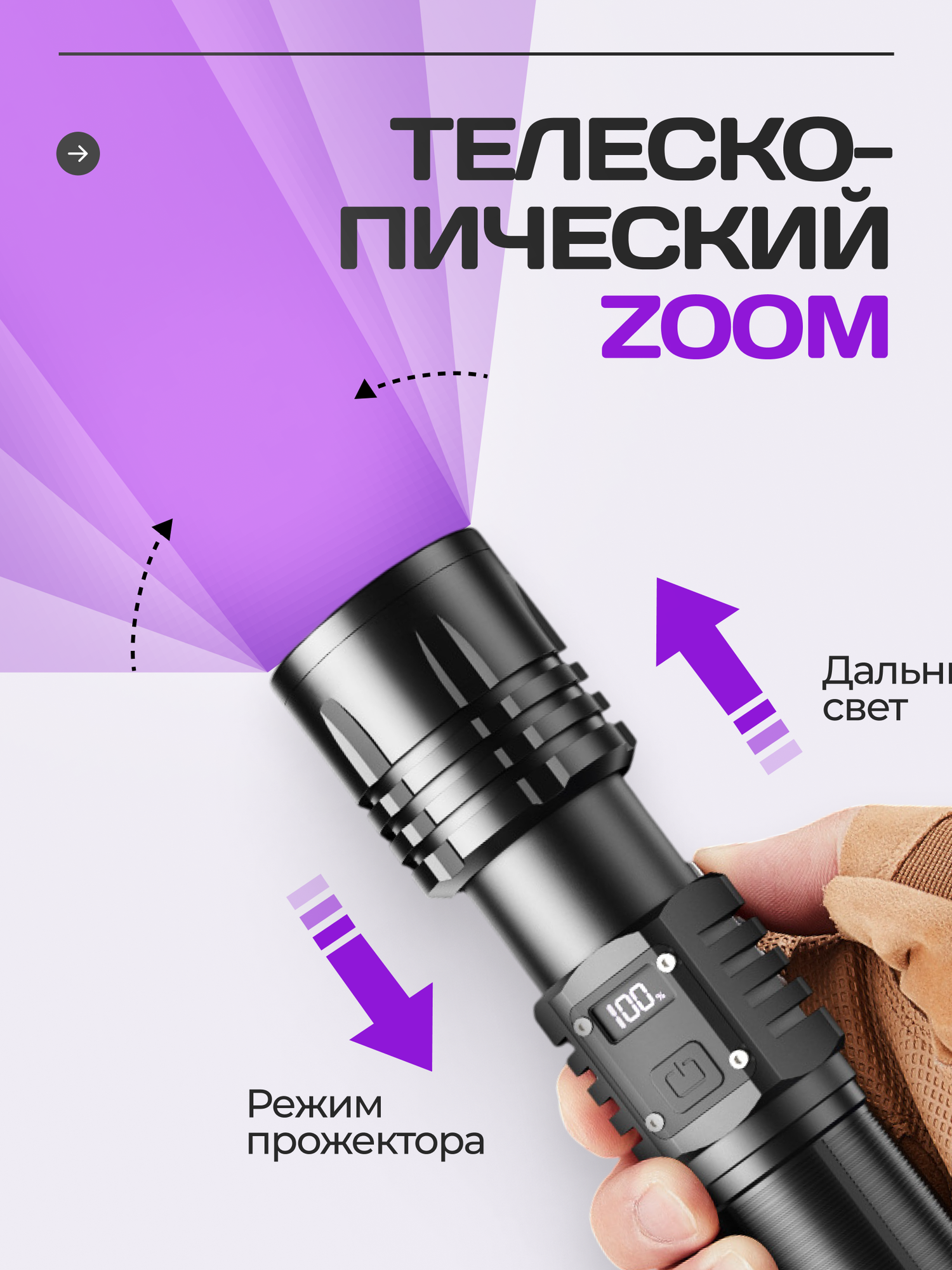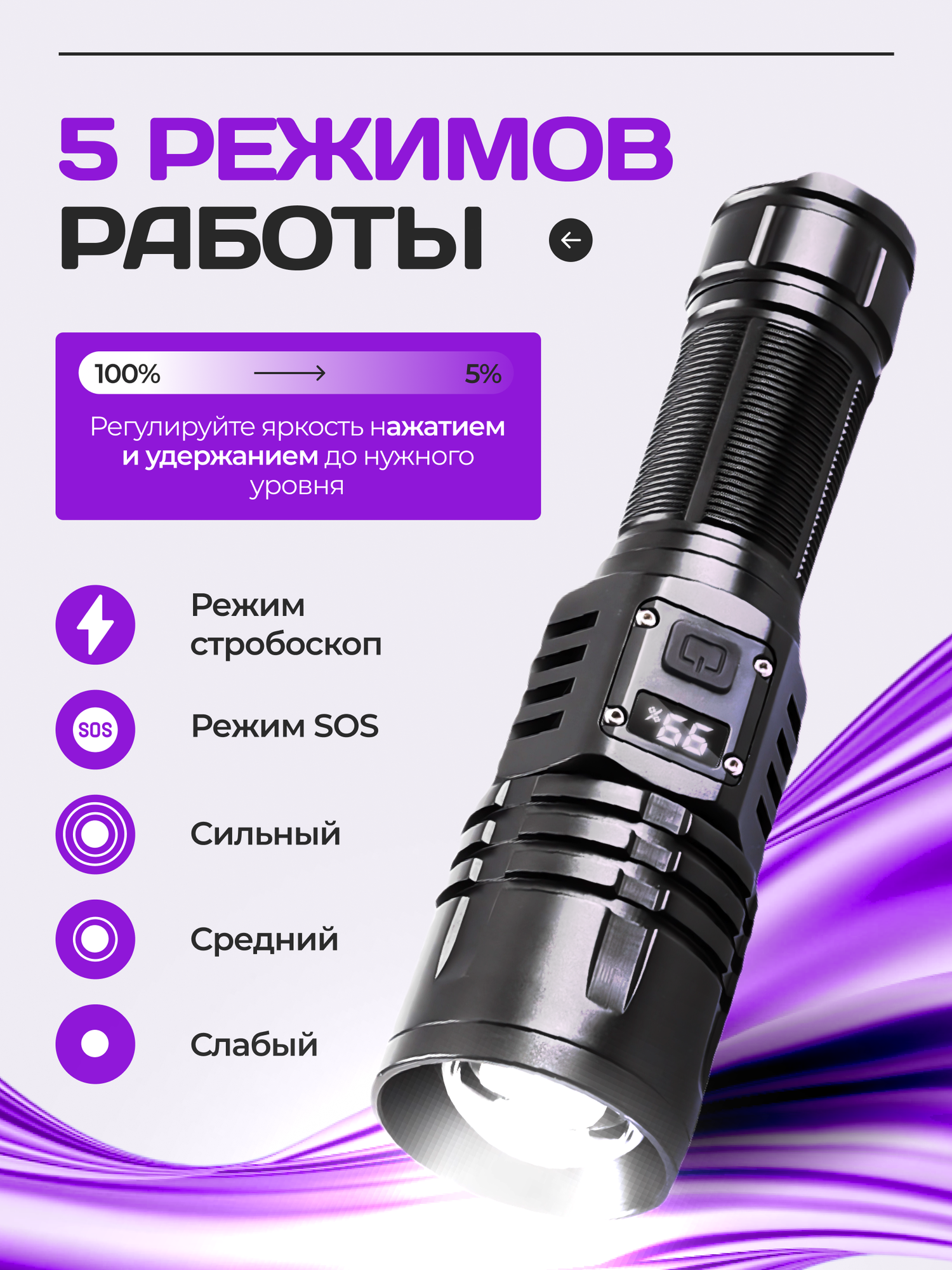 Купить Фонарик аккумуляторный ручной с дисплеем с доставкой по всей России.