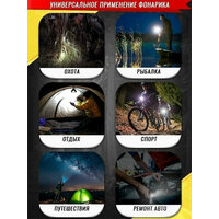 | Особенности | влагозащита, встроенный power bank, дальний свет, индикация заряда, красный свет, мигание, регулировка угла свечения, сигнальный режим, стробоскоп, ударопрочный корпус, фокусировка с зумом, экономичный режим |