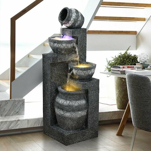 Фонтан садовый для дачи и сада с подсветкой; "Фонтан представляет собой средне-большой комнатный фонтан высотой который можно разместить в доме, на балконе или в саду. Мягкий поток фонтана подарит вам спокойствие, а туман, создаваемый парогенератором, очистит воздух в помещении. Изысканный фонтан среднего размера, его можно поставить в различных местах, таких как сад, зал, офис, магазин и так далее. Фонтан управляет водой, светом и туманом с помощью 3 различных переключателей, и вы можете отключить ненужные. В комплект входят фонтан, насос, распылитель и подсветка, а также вилка европейского стандарта."