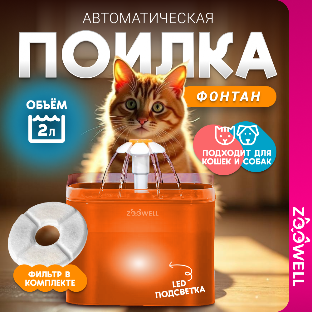 Купить Фонтан для кошек / Автопоилка для кошек / Поилка для кошек с подсветкой ZooWell (оранжевый) с доставкой по всей России. Фонтан для кошек / Автопоилка для кошек / Поилка для кошек с подсветкой ZooWell (оранжевый): сравнение цен, характеристики, фото, актуальное наличие и цены.