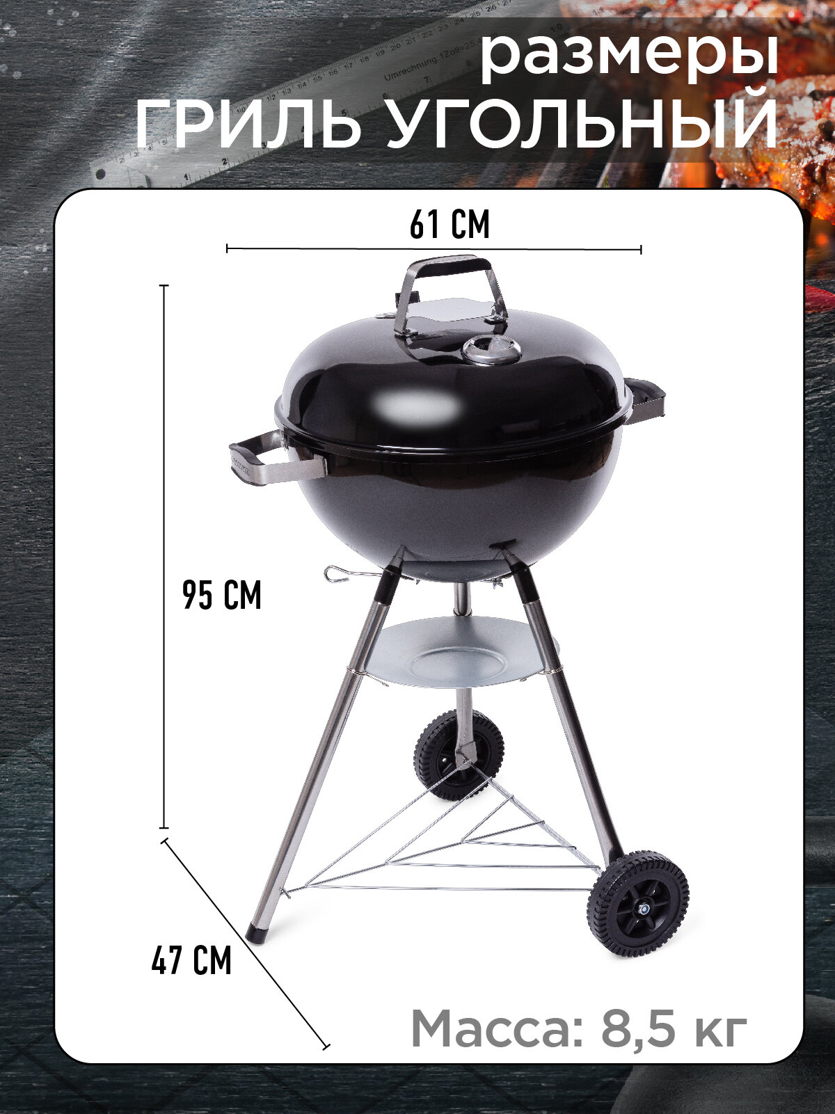 - Габаритные размеры гриля в собранном виде: 61х47х95 см