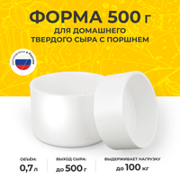 Форма для сыра 500 гр с поршнем под пресс из высококачественного пищевого полипропилена для приготовления твердых сыров. Незаменимая форма с прессом в сыроделии.