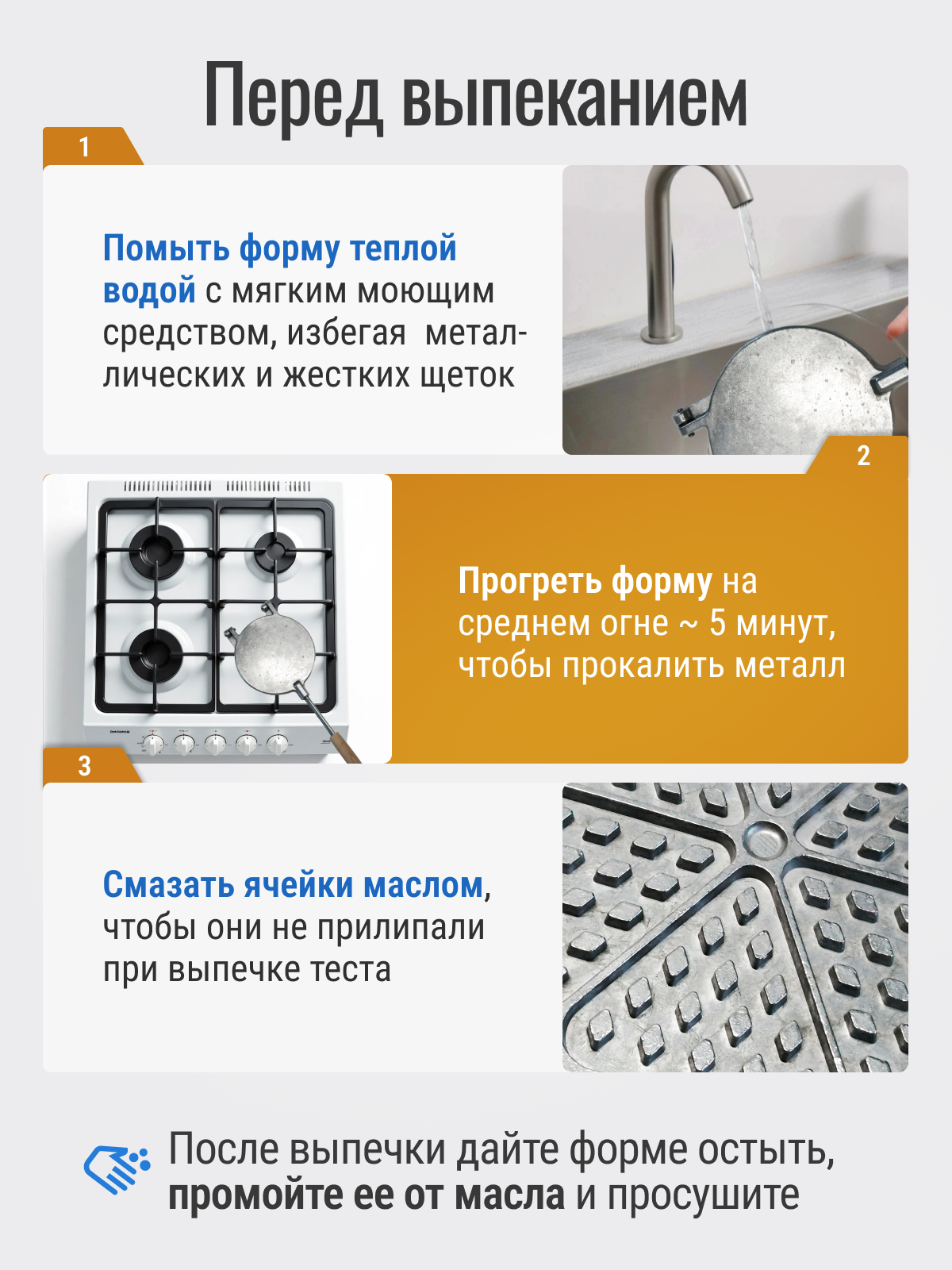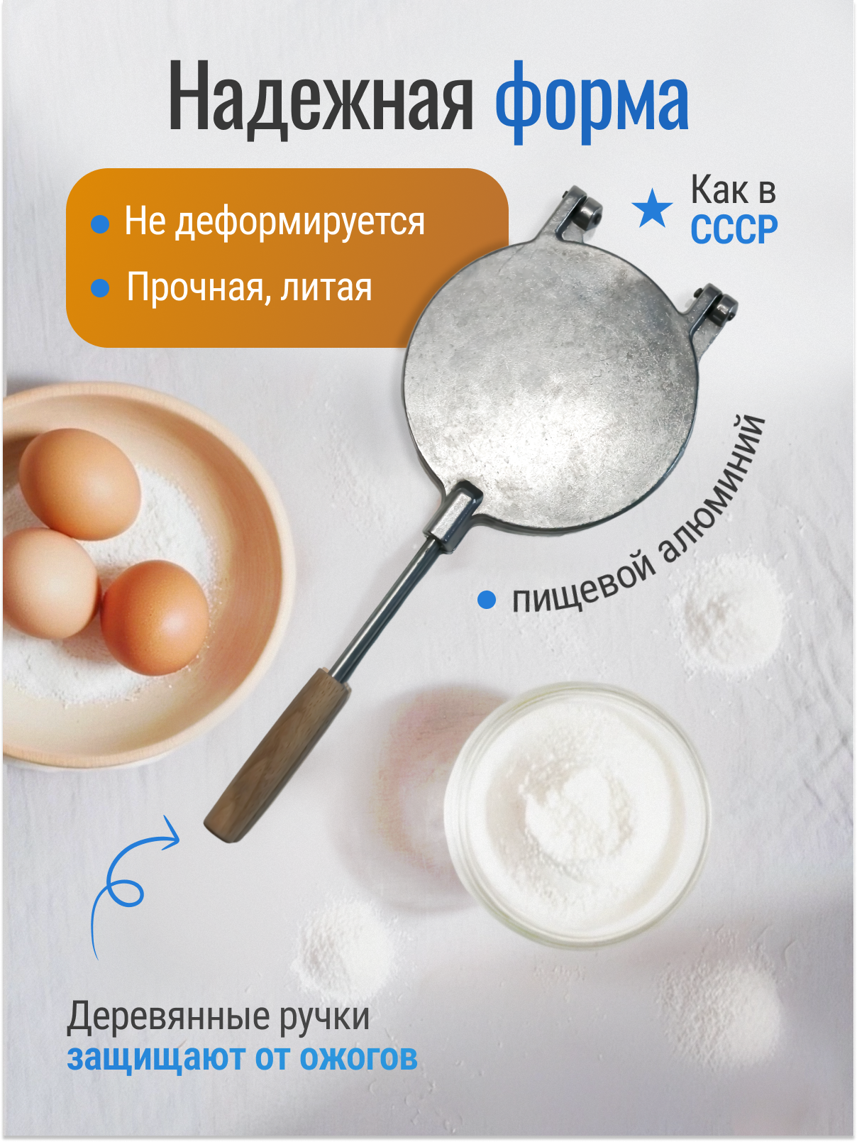 Вафельница форма для газовых и электрических плит - истинная находка для любителей вкусных и ароматных десертов. Венские вафельки напоминают нам о детстве, о тех вкусах и запахах, что заставляют нас вернуться к самым радостным моментам в нашей жизни. Венские вафли приглашают нас в мир воспоминаний и радости. Эта форма для выпечки печенья идеально подходит для приготовления на газовой плите и электрической. Печенница для газа выполнена из высококачественного алюминия, что делает ее замечательно жаропрочной. Такая алюминиевая форма для запекания прекрасно справится с любыми рецептами и гарантирует вам идеальный результат каждый раз. Разъемная форма для выпечки позволяет легко извлекать приготовленные десерты, делая процесс еще более удобным. Деревянные ручки не обжигают руки во время приготовления. Форма венские вафли и бельгийские разъемная оптимальных размеров, диаметром 16 см на 6 толстых вафель. Вы сможете насладиться ароматом и вкусом детства, готовя домашнее печенье по традиционному рецепту в стиле СССР. А для особого сочетания вкусов, попробуйте приготовить бельгийские вафли - настоящую сладкую и сытную находку! Эта алюминиевая металлическая форма, помимо своей функциональности, также легко моется. Рекомендуется смазывать сковороду маслом перед началом выпечки для лучших результатов. Берите в руки формочки для вафлей, сделайте свое детство незабываемым! Попробуйте настоящие вафельницы, которые вернут вам истинный вкус детства и украсят вашу кухню.