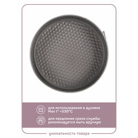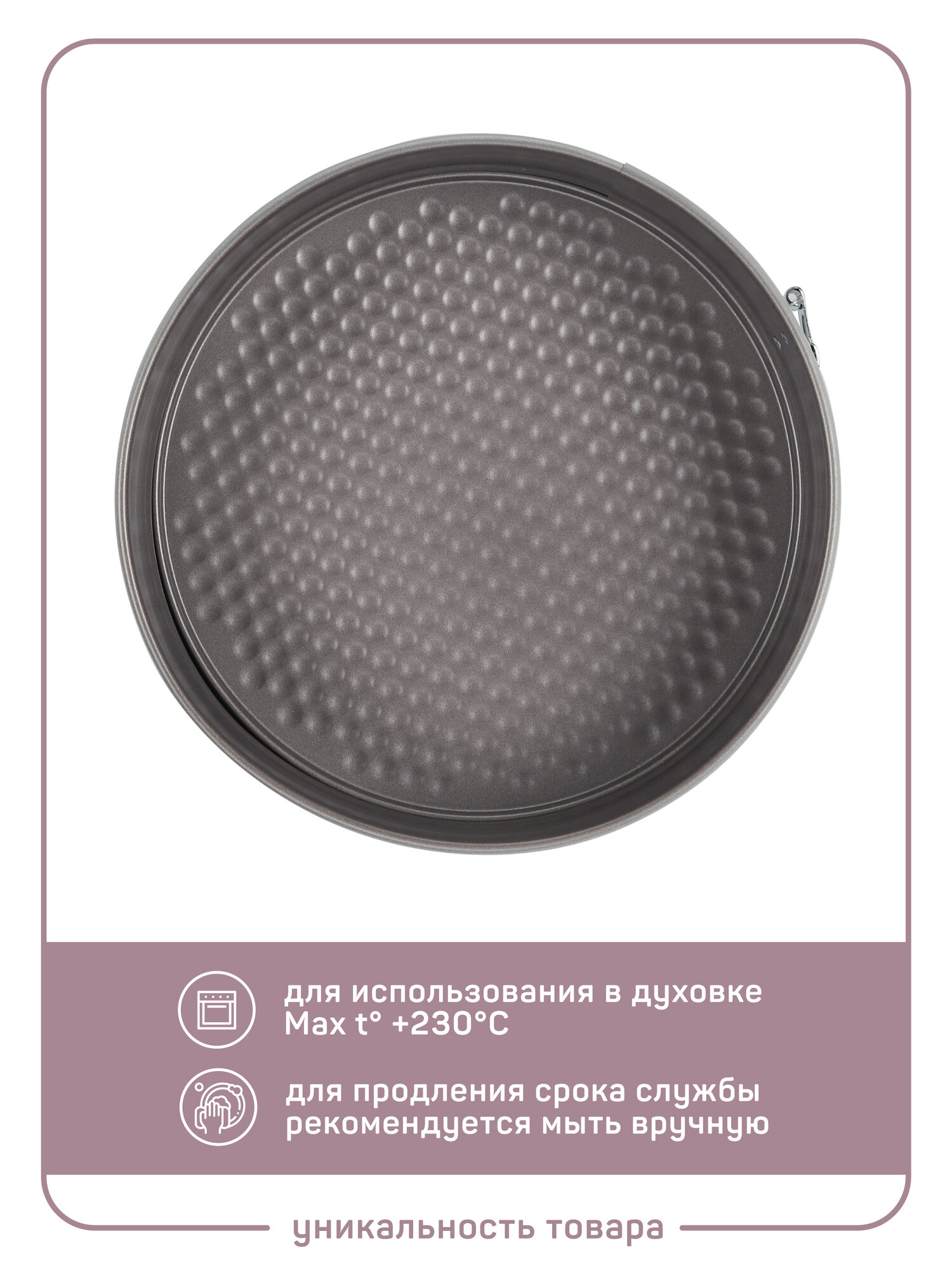 Форма для выпечки Лоретта разъемная размер 22 на 6,6 см. Изготовленная из прочного и высококачественного материала, металлическая разъемная форма обладает отличной прочностью и долговечностью. Она не деформируется под воздействием высоких температур, что позволяет безопасно использовать ее в духовке до 230 градусов. Благодаря антипригарному покрытию GOLDFLON, выпечка легко отделяется от стенок блюда, что облегчает процесс извлечения готового изделия. Хотите иметь возможность легко извлекать готовую выпечку, не повреждая ее? Тогда разъемная форма для выпечки идеально подходит для вашего дома. Этот удобный инструмент позволит вам без труда достать свежеиспеченные пироги, запеканки, кексы или куличи, сохраняя их внешний вид и красоту. Глубокая форма отлично подходит для кондитера для приготовления коржей для торта, домашних пирогов, шарлотки, чизкейка и пирожных. Посуда для выпекания в духовке состоит из двух частей: металлического бортика и дна, которые легко соединяются и разъединяются. Благодаря раздвижному механизму, после приготовления и остывания выпечки, вы можете просто разъединить кухонный аксессуар и аккуратно извлечь готовое изделие, не оставляя никаких следов на нем. Это особенно полезно при приготовлении десерта или пудинга, которые имеют нежные или хрупкие структуры. Разъемная посуда также удобна в хранении и экономит пространство в вашей кухне. Универсальное в своем применении приспособление для кухни, выпечка и запекание кондитерских изысков, хлеба, пиццы. Стильный дизайн добавит элегантности вашей кухне и придаст ей неповторимый шарм. Вы сможете использовать инвентарь для готовки не только в повседневной жизни, но и на праздничных мероприятиях, чтобы порадовать своих близких и гостей вкусными и красивыми десертами, подачей салатов, второго, заливного и других изысков кулинарии. Завальцованные края защитят от порезов рук и придают жесткость форме.