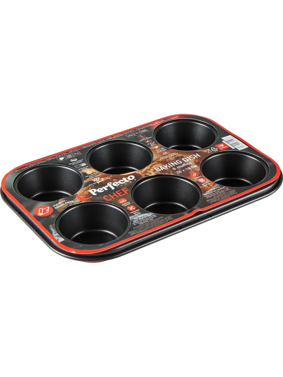 Форма для выпечки, прямоугольная, 6 кексов, 26х18 см, антипригарное покрытие, CHEF, PERFECTO LINEA: сравнение цен, характеристики, фото, актуальное наличие и цены.