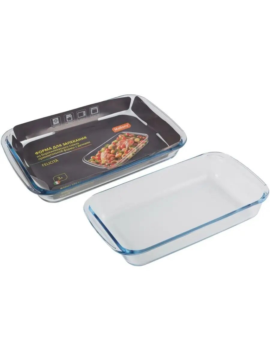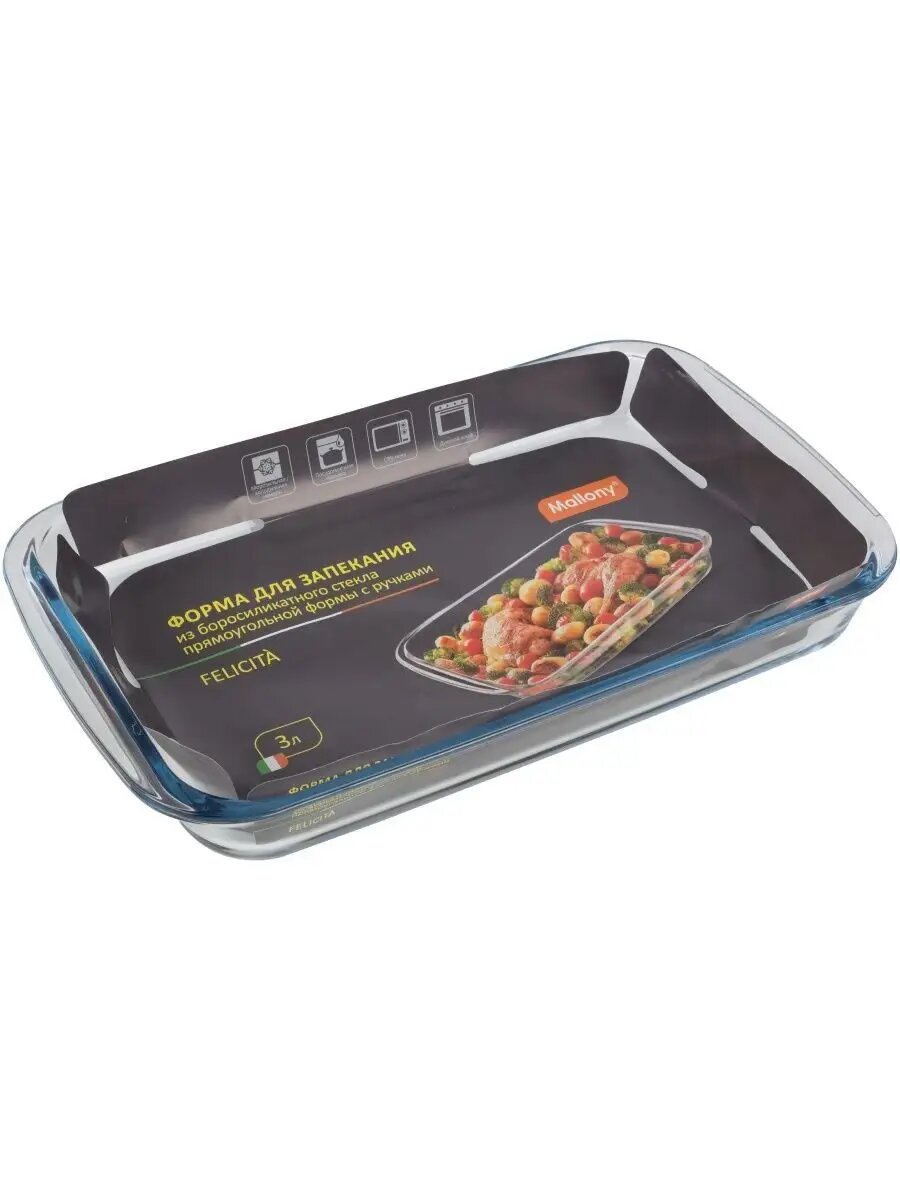 Форма с ручками для запекания из боросиликатного стекла Mallony Felicità 3 л, прямоугольная предназначена для приготовления блюд в духовом шкафу, а также для хранения блюда в холодильнике/морозильной камере. Изделие выполнено из боросиликатного стекла высокого качества, оно не токсична, что обеспечивает безопасное использование. Форма легко моется, благодаря чему не требует сложного ухода. Толщина стекла - 6,09мм Размер: Длинна - 39,3см. Ширина - 23,6см. Высота - 5,1см.