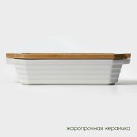 Форма для запекания BellaTenero, 1.6 л, 31×19×7.5 см, с бамбуковой крышкой, керамика, белая