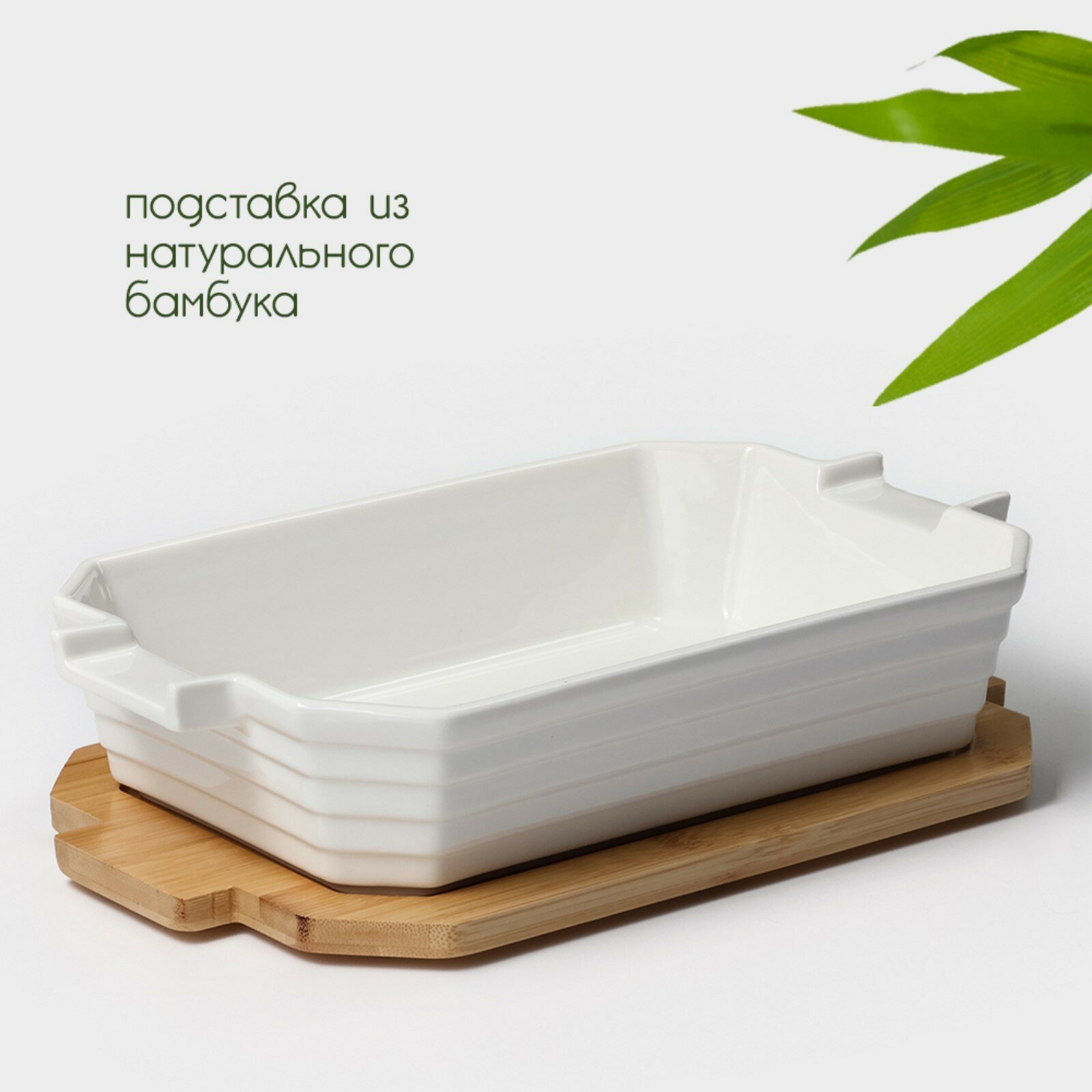 Купить Форма для запекания BellaTenero, 1.6 л, 31×19×7.5 см, с бамбуковой крышкой, керамика, белая с доставкой по всей России.