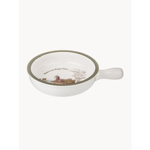 Форма для запекания оснащена удобной ручкой, что облегчает ее использование и предотвращает случайные ожоги. Дизайн формы выполнен в стиле "животные и птицы". На белом фоне изображены высокие ели, горная речка, молчаливые запруды, поскрипывающая мельница, затихшая на отмели лодка, важные утки и покачивающийся гамак.