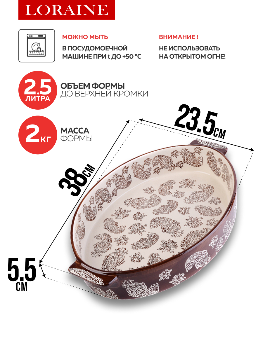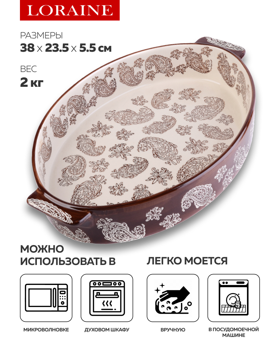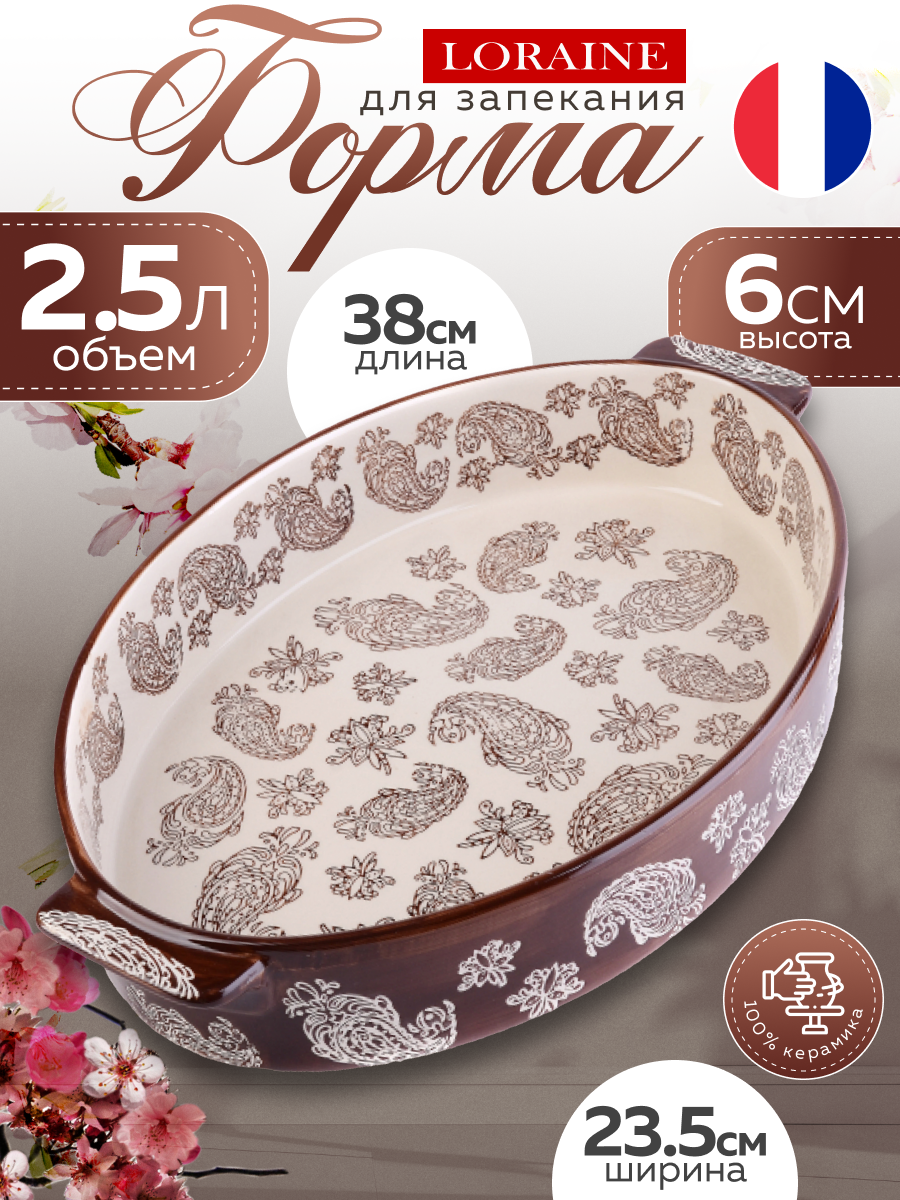 Форма для запекания Loraine 31113, керамика, 39.5 см x 6 см, цвет коричневый: сравнение цен, характеристики, фото, актуальное наличие и цены.