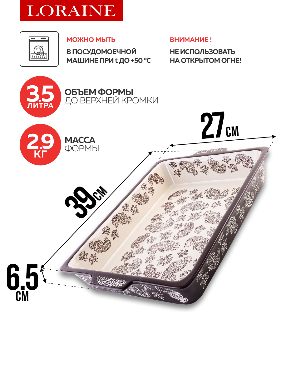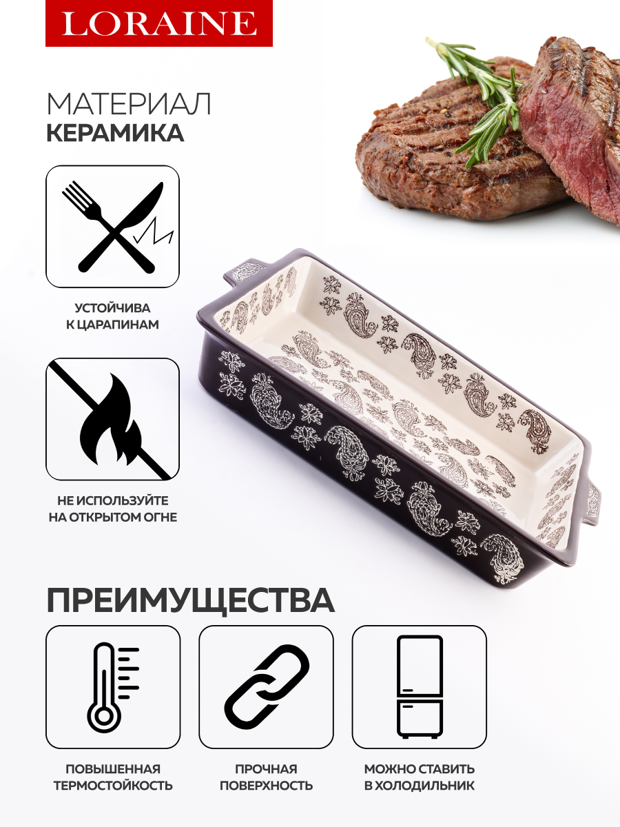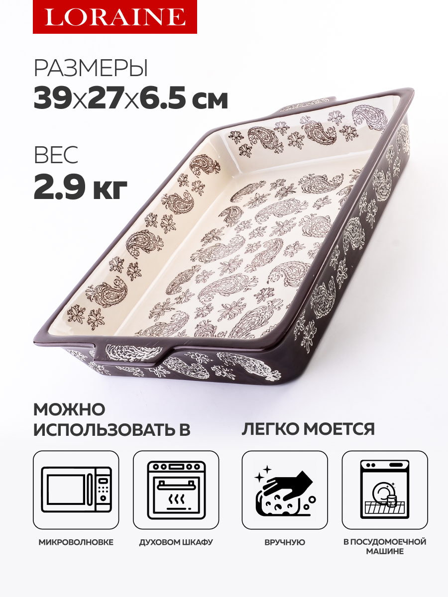 Форма для запекания Loraine, керамическая, прямоугольная, коричневая, 39×6.5 см: сравнение цен, характеристики, фото, актуальное наличие и цены.