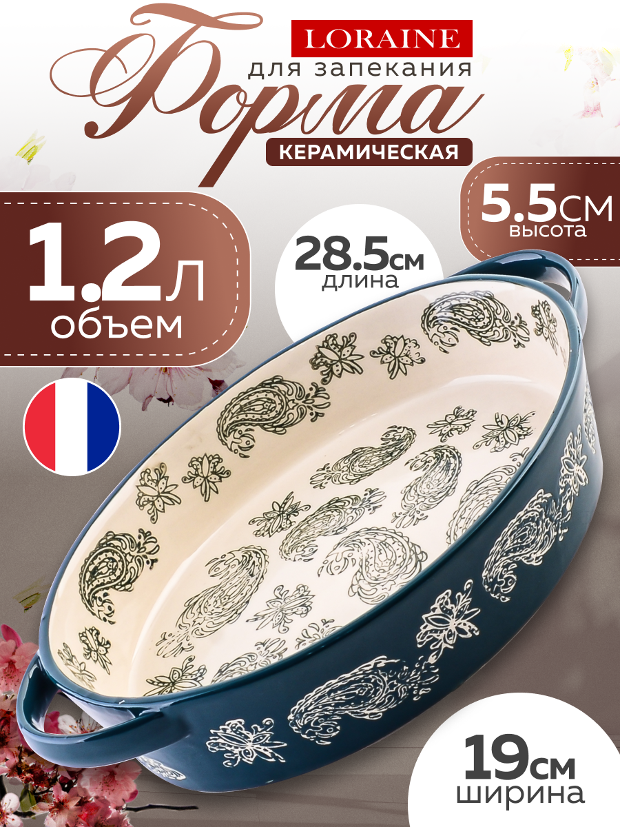 Форма для запекания Loraine, керамика, овальная, можно мыть в посудомойке, зеленая: сравнение цен, характеристики, фото, актуальное наличие и цены.