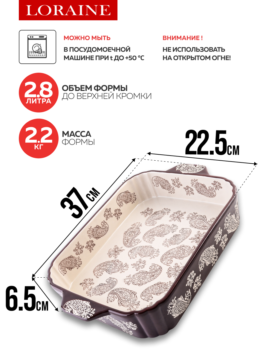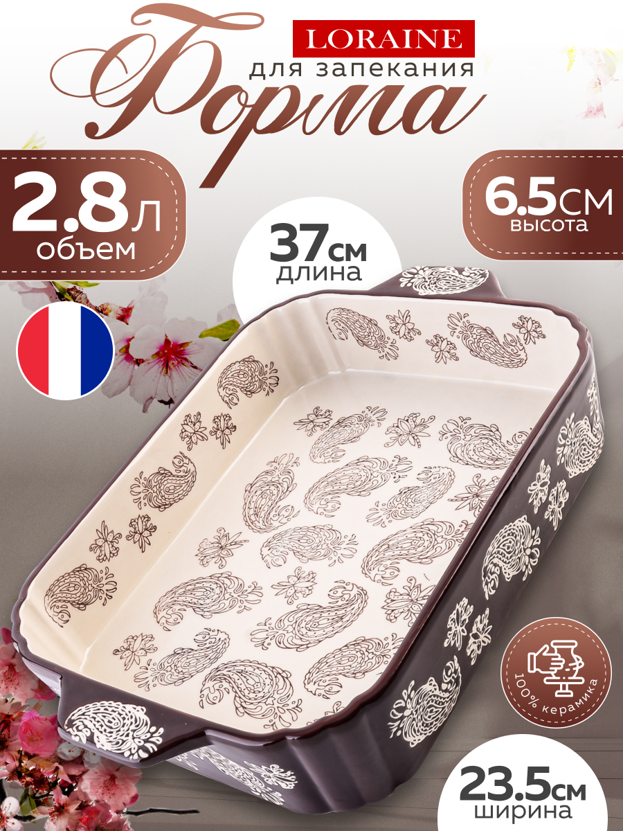 Купить Форма для запекания Loraine, керамика, прямоугольная, для СВЧ, коричневая с доставкой по всей России. Форма для запекания Loraine, керамика, прямоугольная, для СВЧ, коричневая: сравнение цен, характеристики, фото, актуальное наличие и цены.