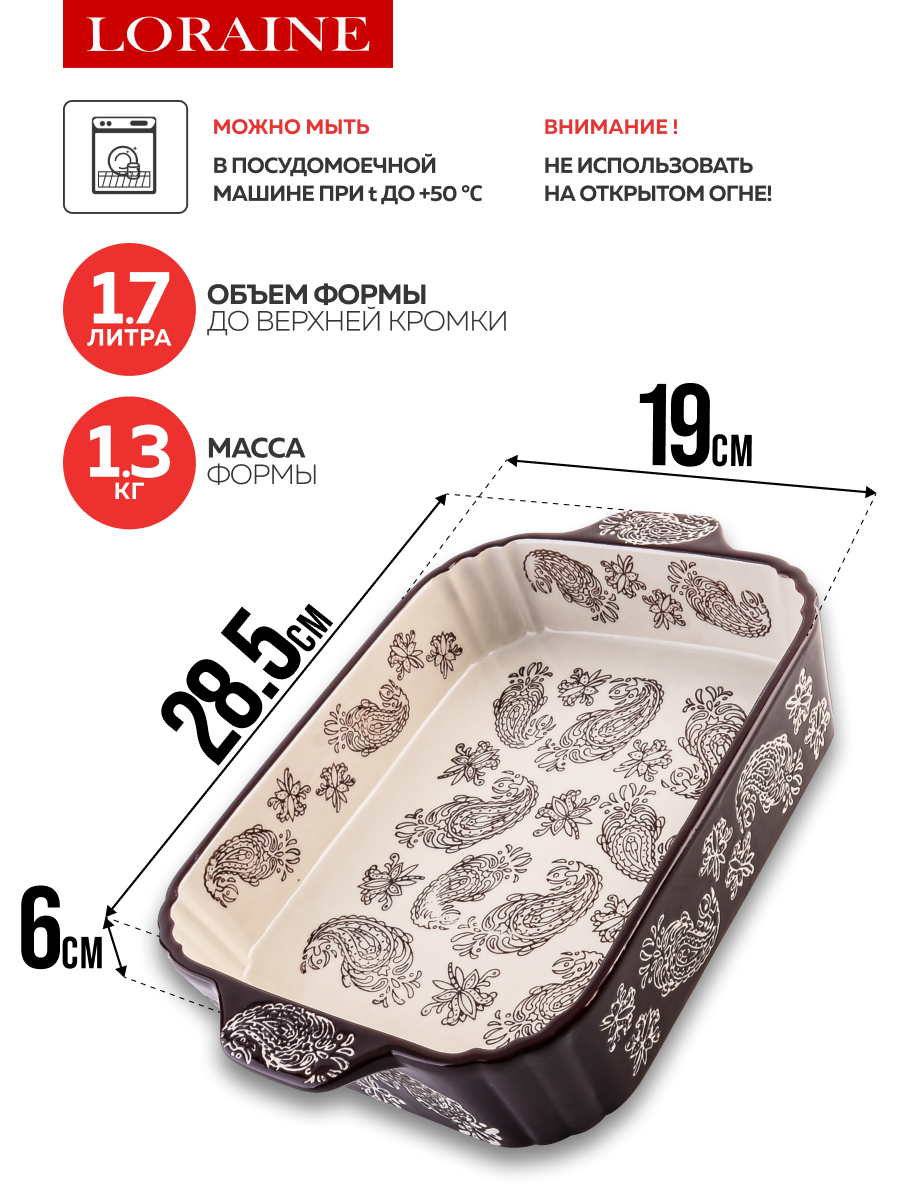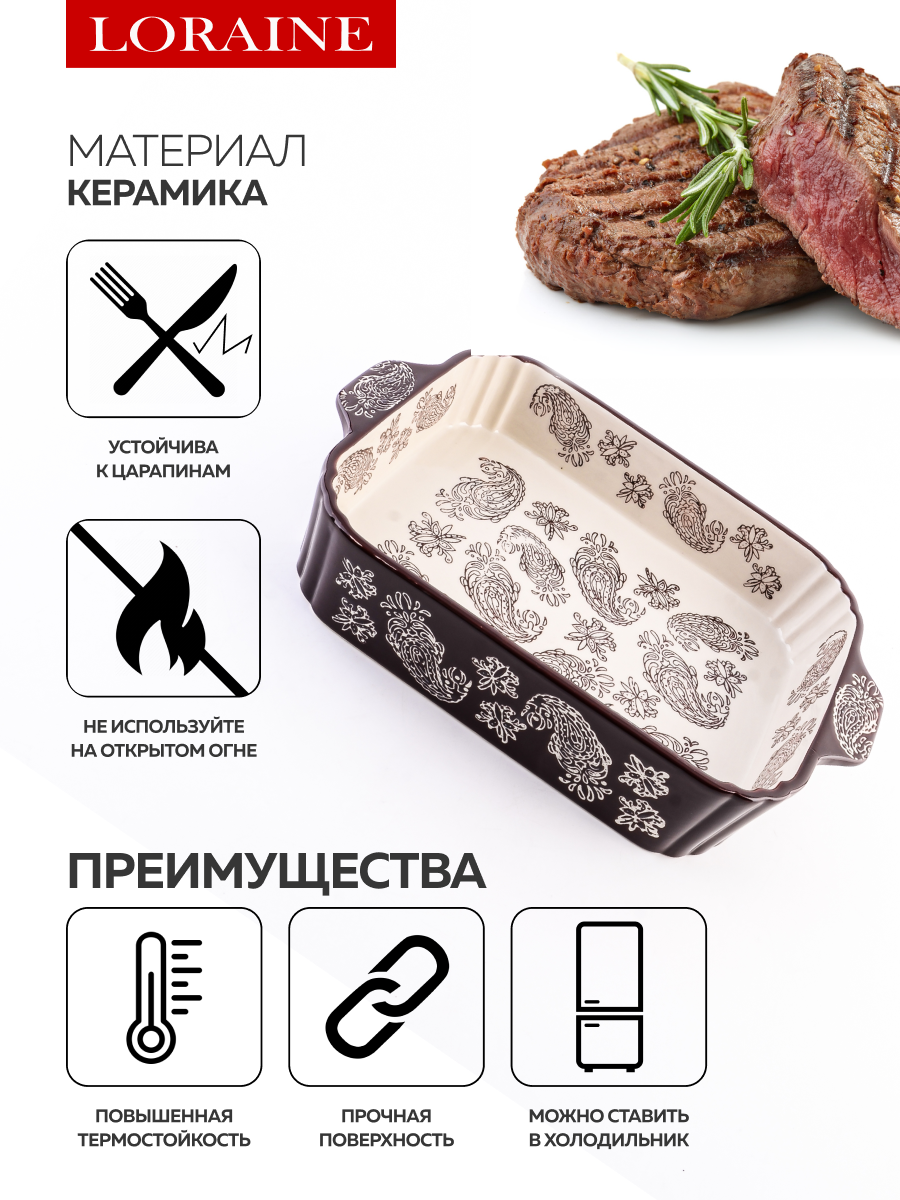 Купить Форма для запекания Loraine, керамика, прямоугольная, для СВЧ, коричневый с доставкой по всей России. Форма для запекания Loraine, керамика, прямоугольная, для СВЧ, коричневый: сравнение цен, характеристики, фото, актуальное наличие и цены.