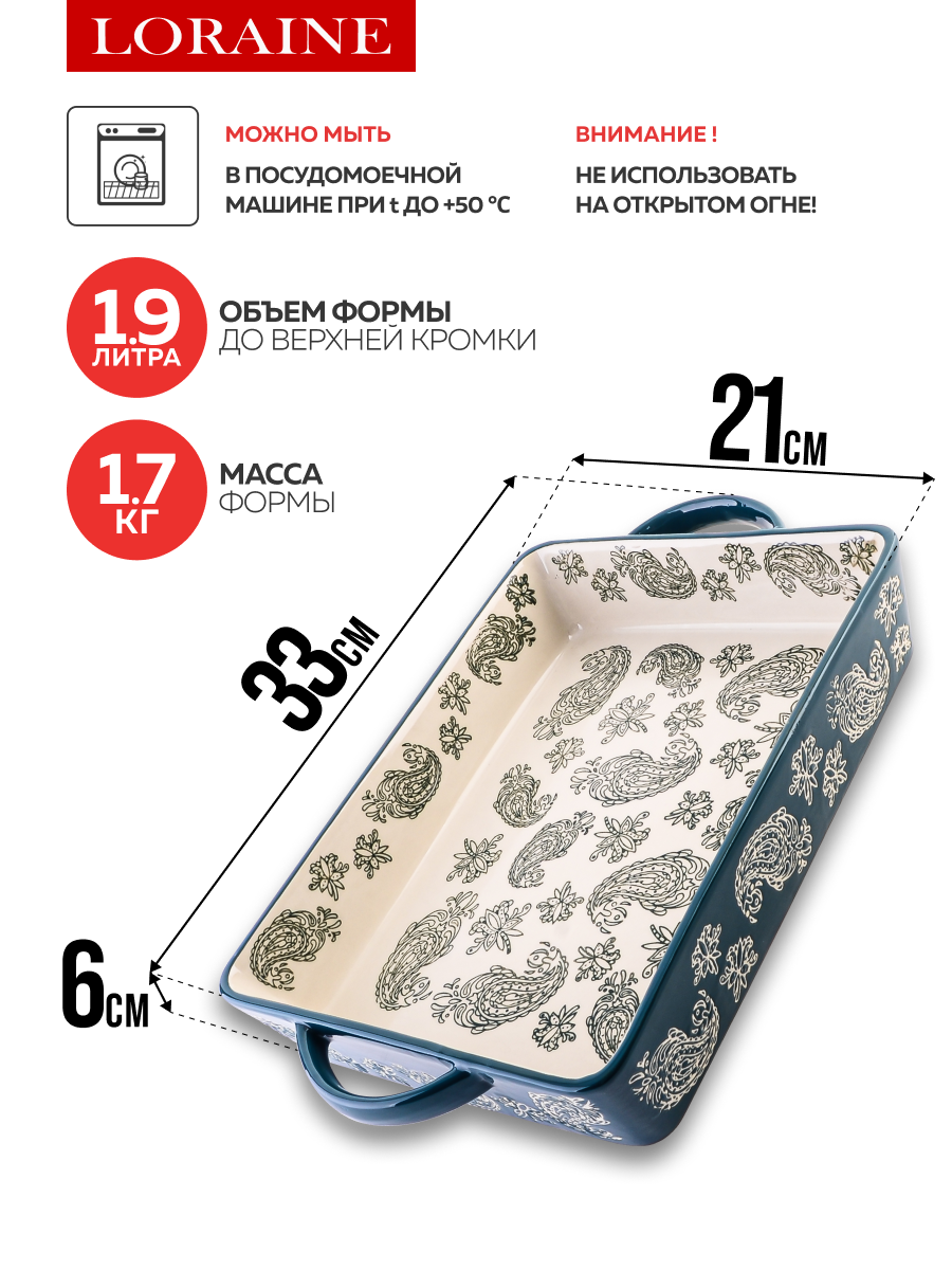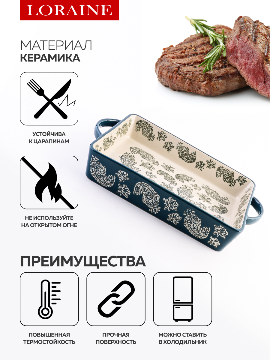 Купить Форма для запекания Loraine, керамика, зеленая, для посудомойки, 33×6 см с доставкой по всей России. Форма для запекания Loraine, керамика, зеленая, для посудомойки, 33×6 см: сравнение цен, характеристики, фото, актуальное наличие и цены.