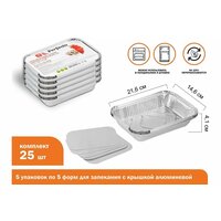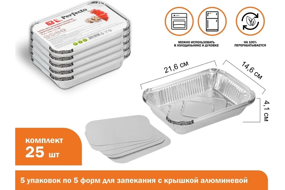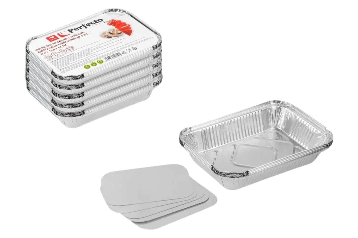 Форма для запекания PERFECTO LINEA с крышкой, алюминиевая, одноразовая, прямоугольная, 5 шт, 5 упаковок, 21.6×14.6×4.1 см, 45-522155К: сравнение цен, характеристики, фото, актуальное наличие и цены.