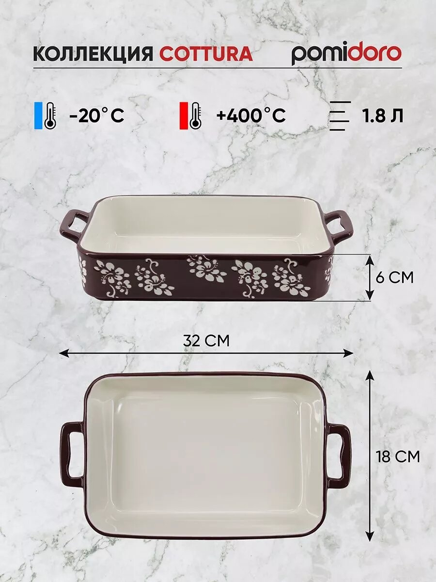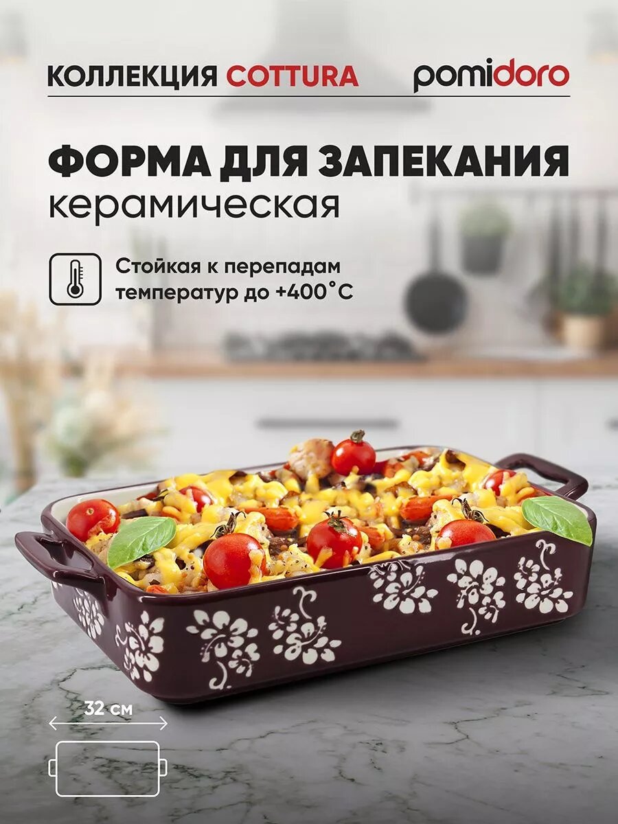 Форма для запекания Pomi D’Oro Cottura P580605, керамика, с ручками, 32×18 см: сравнение цен, характеристики, фото, актуальное наличие и цены.