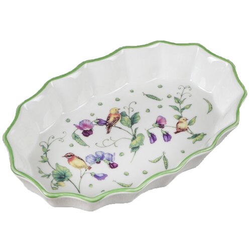 Форма для запекания фарфоровая Доляна «Зелёный сад» - это не просто посуда, это настоящее произведение искусства. Она выполнена в форме овала, что позволяет готовить вторые блюда и мясо.