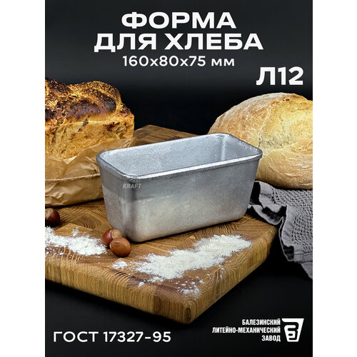 Форма для хлеба алюминиевая Л12, размер 160х80х75 мм, масса выпекаемого хлеба 200-300 гр. Хлебная форма изготовлена в соответствии с ГОСТ 17327-95 " Формы хлебопекарные . Технические условия". Форма заводская, может иметь шершавые края, что никак не влияет на качество хлеба. Шершавые края в процессе эксплуатирования нивелируются, либо их можно с легкостью сгладить наждачной бумагой. Перед первым использованием форму для хлеба необходимо прокалить с масляным слоем на внутренней поверхности, инструкция для первого использования в фотографиях. Алюминиевые формы для хлеба известны своей практичностью, ведь алюминий обладает высокой коррозийной устойчивостью и такая форма для выпечки хлеба прослужит не одно десятилетие. А за счет того, что хлебопекарная форма из алюминия имеет свойство быстрого и равномерного нагрева, корочка хлеба получается толстой и хорошо пропеченной, именно такую корочку, мы ели в детстве, возвращаясь из хлебного. Подходит для выпечки как в газовой духовке, так и в электрической печи, или печи на дровах. Прямоугольная форма для выпечки образует красивые, ровные буханки пшеничного, ржаного хлеба. Используйте собственную рецептуру, добавляя в хлеб семечки, злаки, сухофрукты. Форма для хлеба. Алюминиевая, литая форма для выпечки хлеба Л12 долговечна и сохраняет форму буханки, проста и понятна в использовании, подходит для производства хлебобулочных изделий и для домашнего пользования.