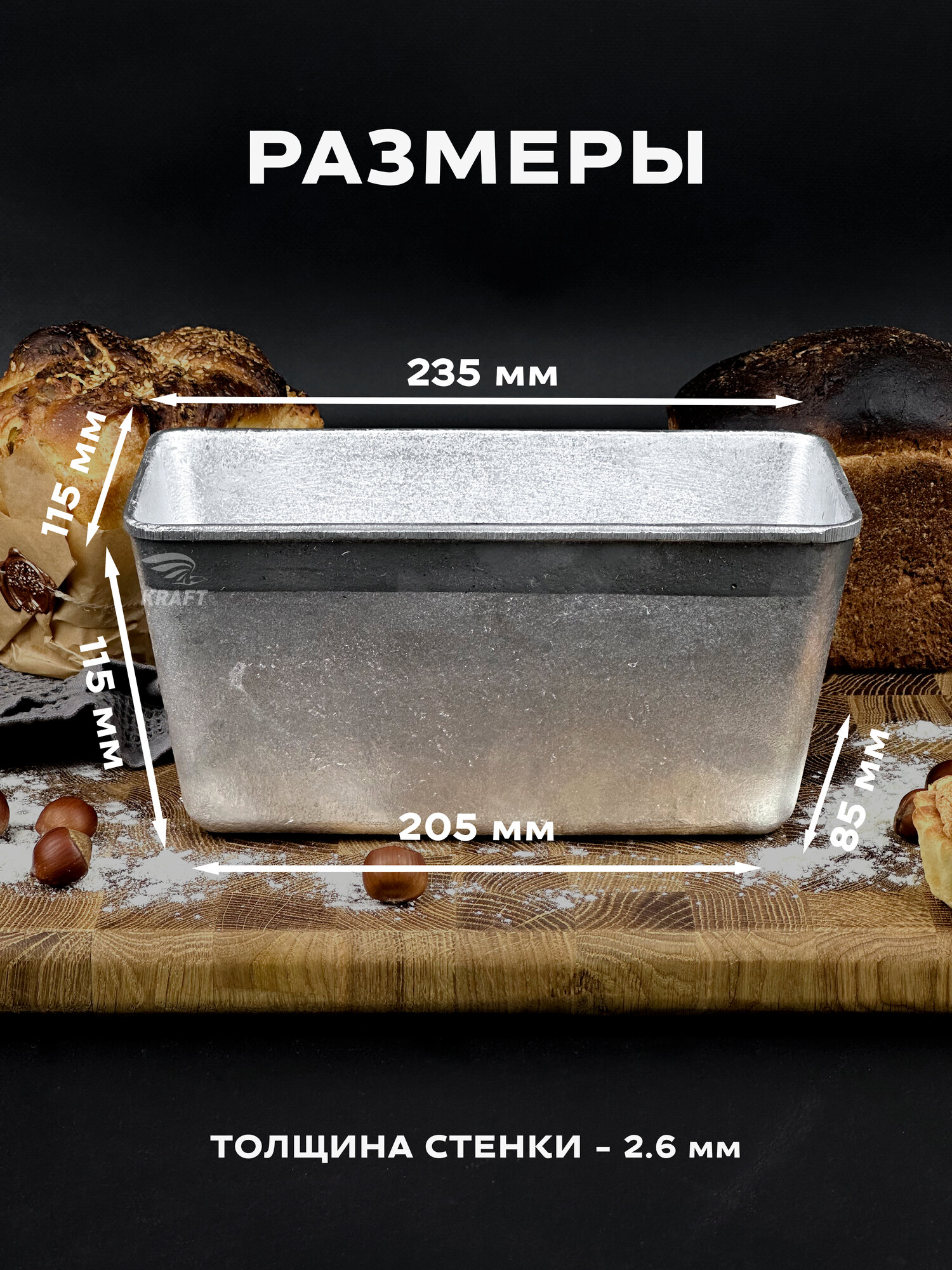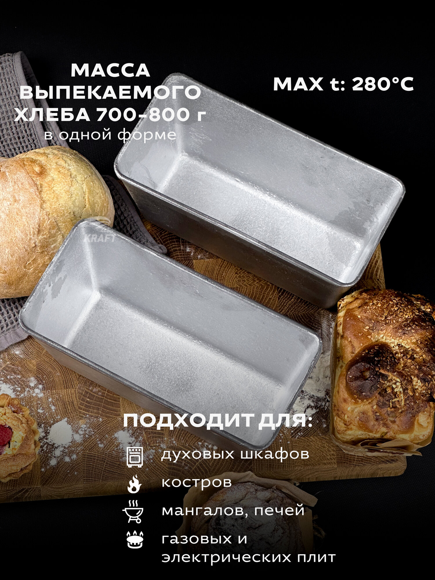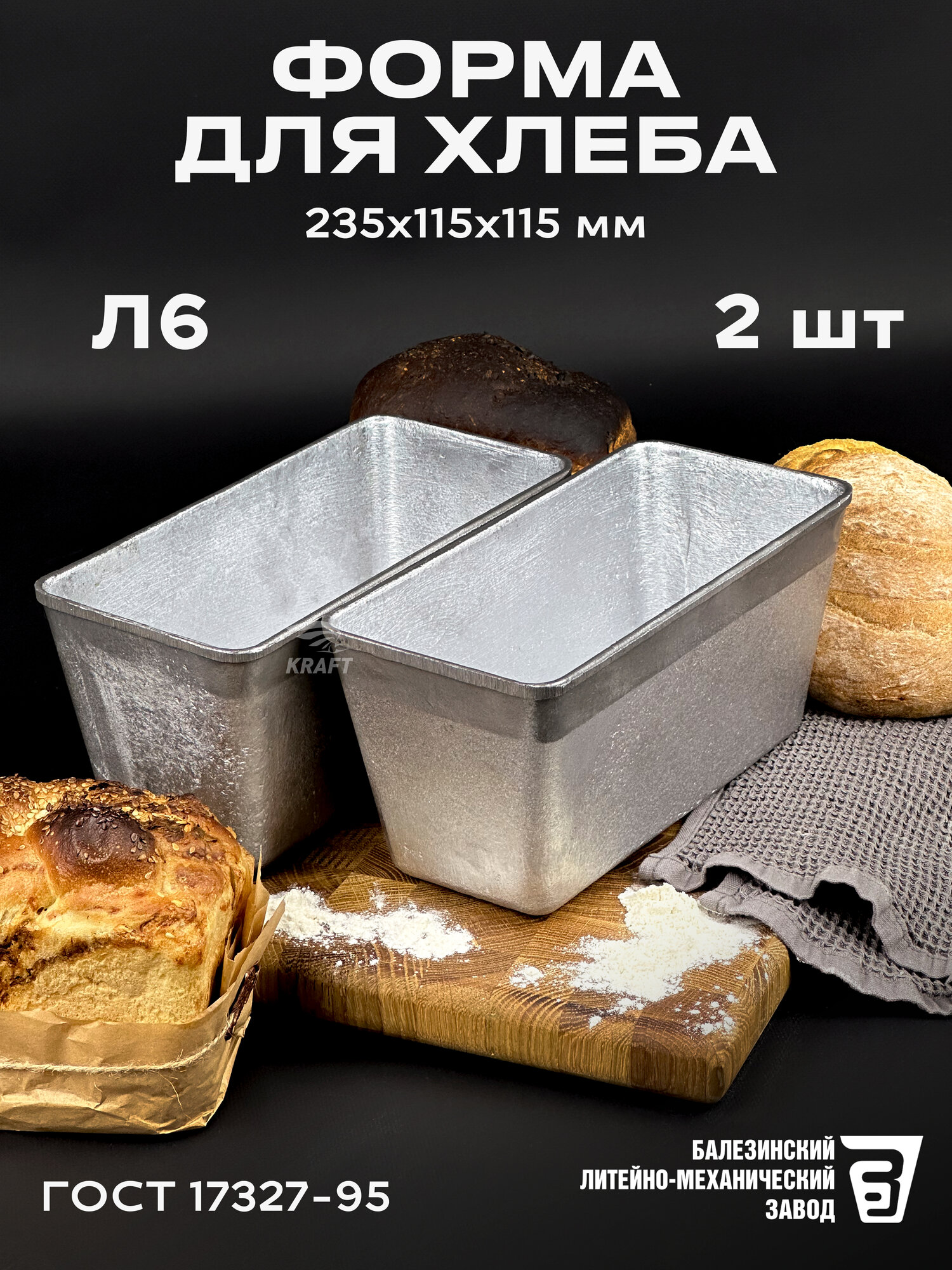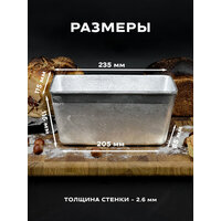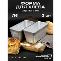 Форма для хлеба алюминиевая Л 6 комплект 2 штуки, размер 235х115х115 мм, масса выпекаемого хлеба 700-800 гр. Хлебная форма изготовлена в соответствии с ГОСТ 17327-95 " Формы хлебопекарные . Технические условия". Форма заводская, может иметь шершавые края, что никак не влияет на качество хлеба. Шершавые края в процессе эксплуатирования нивелируются, либо их можно с легкостью сгладить наждачной бумагой. Перед первым использованием форму для хлеба необходимо прокалить с масляным слоем на внутренней поверхности, инструкция для первого использования в фотографиях. Алюминиевые формы для хлеба известны своей практичностью, ведь алюминий обладает высокой коррозийной устойчивостью и такая форма для выпечки хлеба прослужит не одно десятилетие. А за счет того, что хлебопекарная форма из алюминия имеет свойство быстрого и равномерного нагрева, корочка хлеба получается толстой и хорошо пропеченной, именно такую корочку, мы ели в детстве, возвращаясь из хлебного. Подходит для выпечки как в газовой духовке, так и в электрической печи, или печи на дровах. Прямоугольная форма для выпечки образует красивые, ровные буханки пшеничного, ржаного хлеба. Используйте собственную рецептуру, добавляя в хлеб семечки, злаки, сухофрукты. Форма для хлеба. Алюминиевая, литая форма для выпечки хлеба Л 6 долговечна и сохраняет форму буханки, проста и понятна в использовании, подходит для производства хлебобулочных изделий и для домашнего пользования.