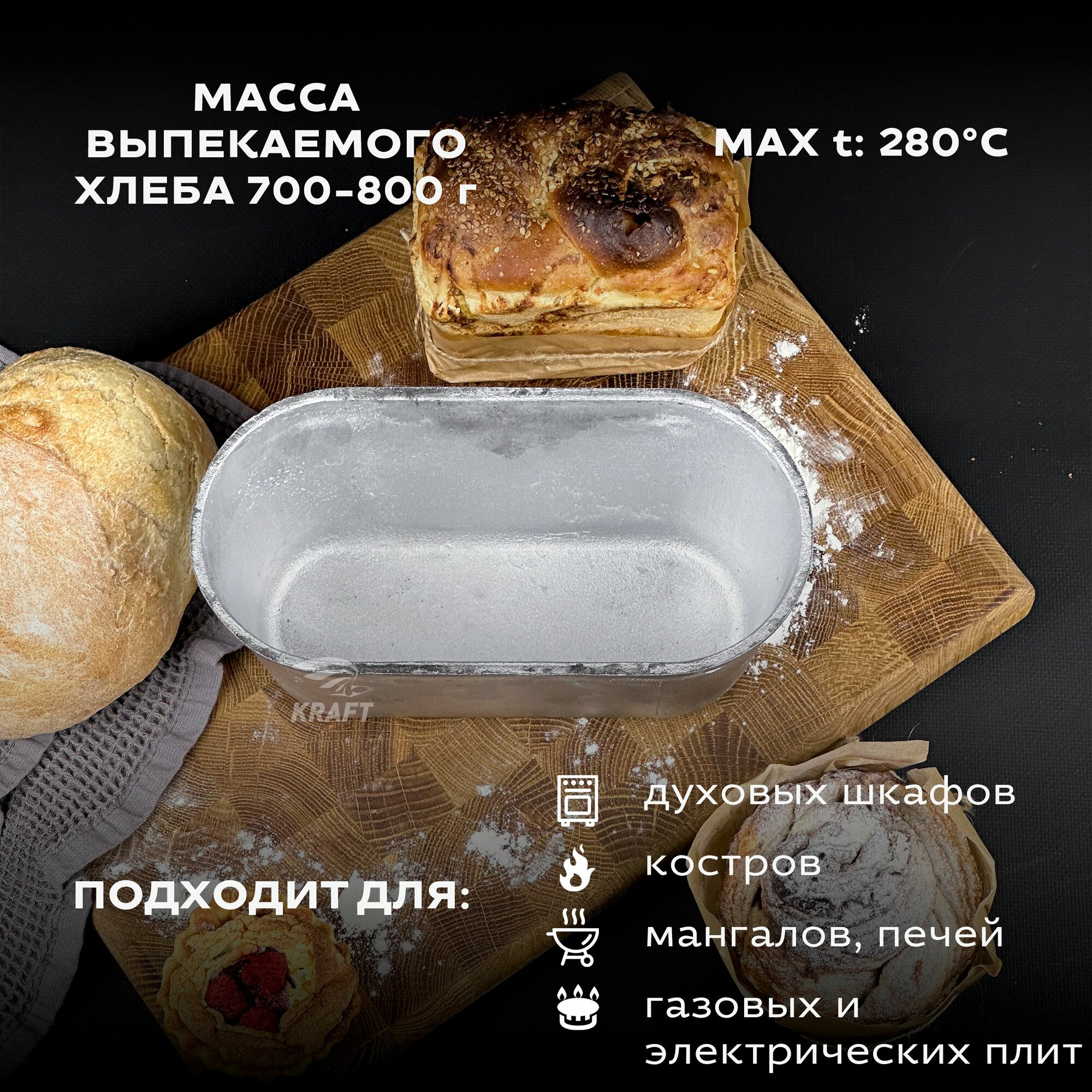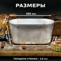 Комплект форм для хлеба алюминиевые 2 штуки Л 6 овальные, размер 235х115х115 мм, масса выпекаемого хлеба 700-800 гр. Хлебная форма изготовлена в соответствии с ГОСТ 17327-95 " Формы хлебопекарные . Технические условия". Форма заводская, может иметь шершавые края, что никак не влияет на качество хлеба. Шершавые края в процессе эксплуатирования нивелируются, либо их можно с легкостью сгладить наждачной бумагой. Перед первым использованием форму для хлеба необходимо прокалить с масляным слоем на внутренней поверхности, инструкция для первого использования в фотографиях. Алюминиевые формы для хлеба известны своей практичностью, ведь алюминий обладает высокой коррозийной устойчивостью и такая форма для выпечки хлеба прослужит не одно десятилетие. А за счет того, что хлебопекарная форма из алюминия имеет свойство быстрого и равномерного нагрева, корочка хлеба получается толстой и хорошо пропеченной, именно такую корочку, мы ели в детстве, возвращаясь из хлебного. Подходит для выпечки как в газовой духовке, так и в электрической печи, или печи на дровах. Прямоугольная форма для выпечки образует красивые, ровные буханки пшеничного, ржаного хлеба. Используйте собственную рецептуру, добавляя в хлеб семечки, злаки, сухофрукты. Форма для хлеба. Алюминиевая, литая форма для выпечки хлеба Л 6 долговечна и сохраняет форму буханки, проста и понятна в использовании, подходит для производства хлебобулочных изделий и для домашнего пользования.