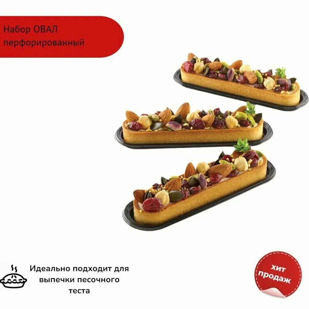 Форма металлическая для выпечки овал Silikomart / Формочка кулинарная нержавеющая перфорированная для запекания в духовке OBL146 / Металлический молд / для приготовления десертов пирожных пирогов / для приготовления песочной основы тартов