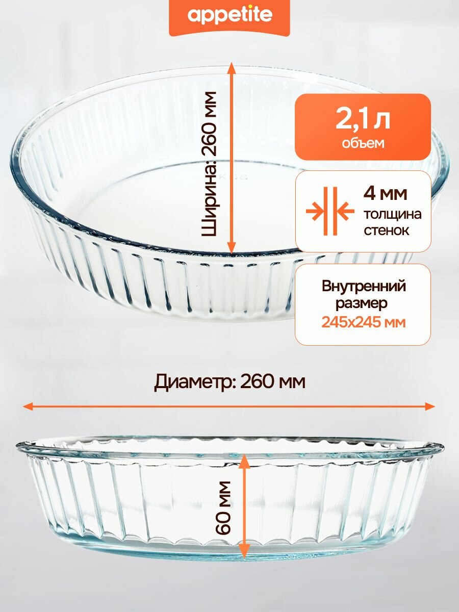 Купить Форма стеклянная круглая 26х6см/2,1л ТМ Appetite с доставкой по всей России. Форма стеклянная круглая 26х6см/2,1л ТМ Appetite: сравнение цен, характеристики, фото, актуальное наличие и цены.