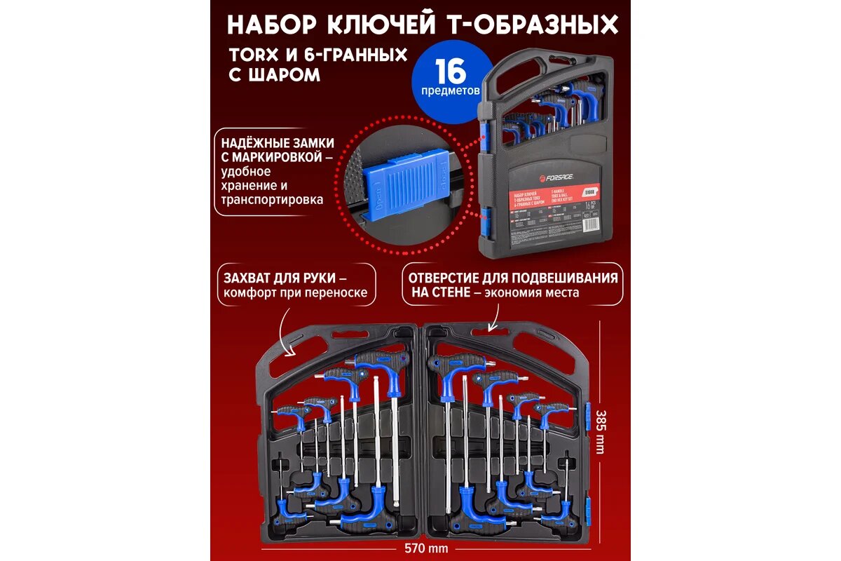 Forsage Набор ключей Т-образных TORX/6-гранныхс шаром, 16 предметов (Н:2,2.5х75, 3,4х100, 5,6х150, 8,10х200мм; Т:10,15х75, 20,25х100, 30,40х150, 45,50х200мм), в кейсе F-5166B(25645): сравнение цен, характеристики, фото, актуальное наличие и цены.