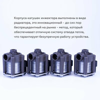 Корпуса катушек инжектора выполнены в виде радиатора, это инновационный - до сих пор беспрецедентный на рынке - метод, который обеспечивает отличную систему отвода тепла, что гарантирует безупречную работу устройства.
