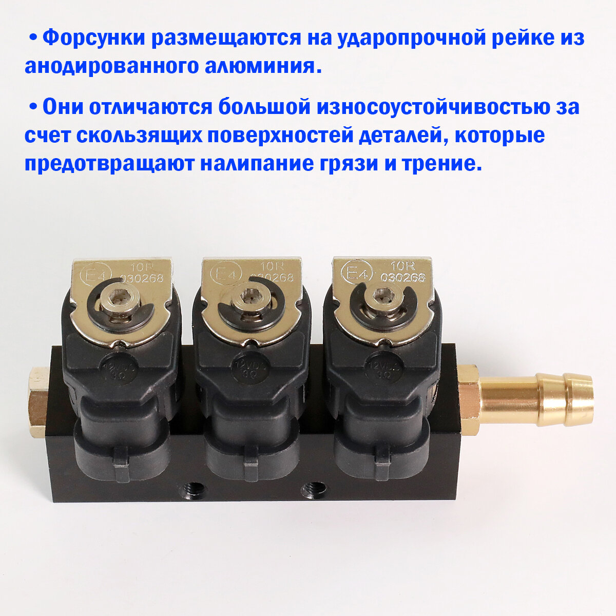Форсунки DIGITRONIC type 30 BFC на 3 цилиндра - одна из самых распространённых газовых реек в России и СНГ. Ремонтопригодна. При применении центрифужного фильтра ресурс работы форсунок увеличивается на 60-70%.