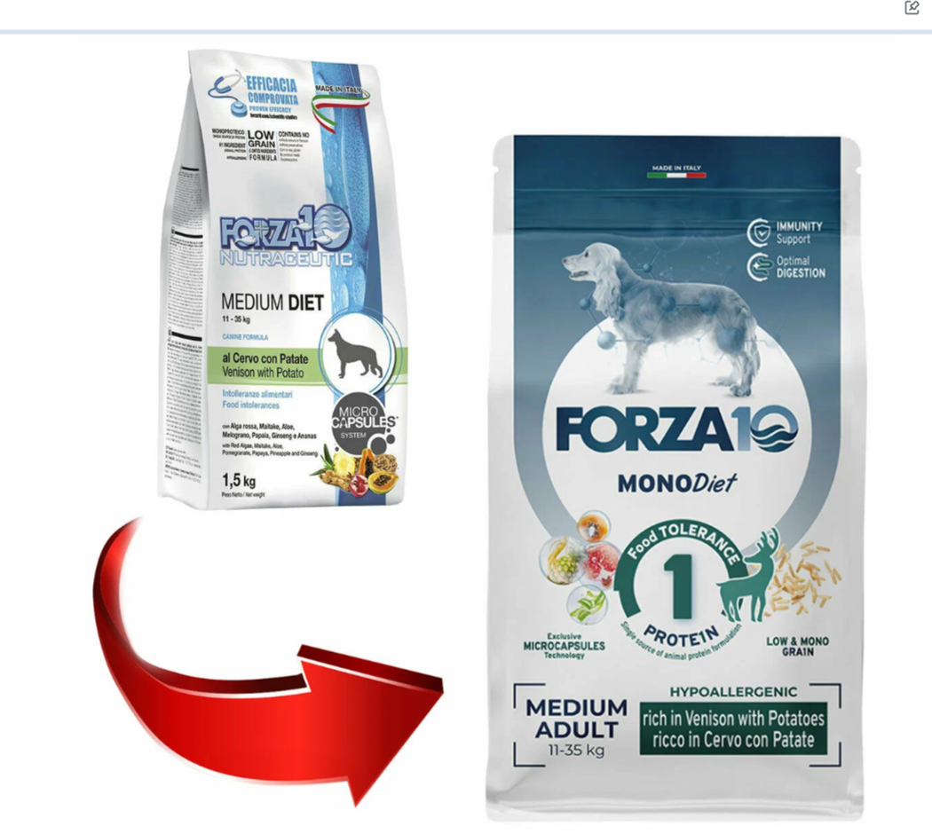 Forza10 Medium Diet Cervo/Patate 1,5 кг Диетический корм для взрослых собак средних пород из оленины: сравнение цен, характеристики, фото, актуальное наличие и цены.