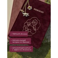 Материалы премиального качества: обложка выполнена из французского приятного на ощупь бархатного материала, каждая деталь книги — ручная работа.