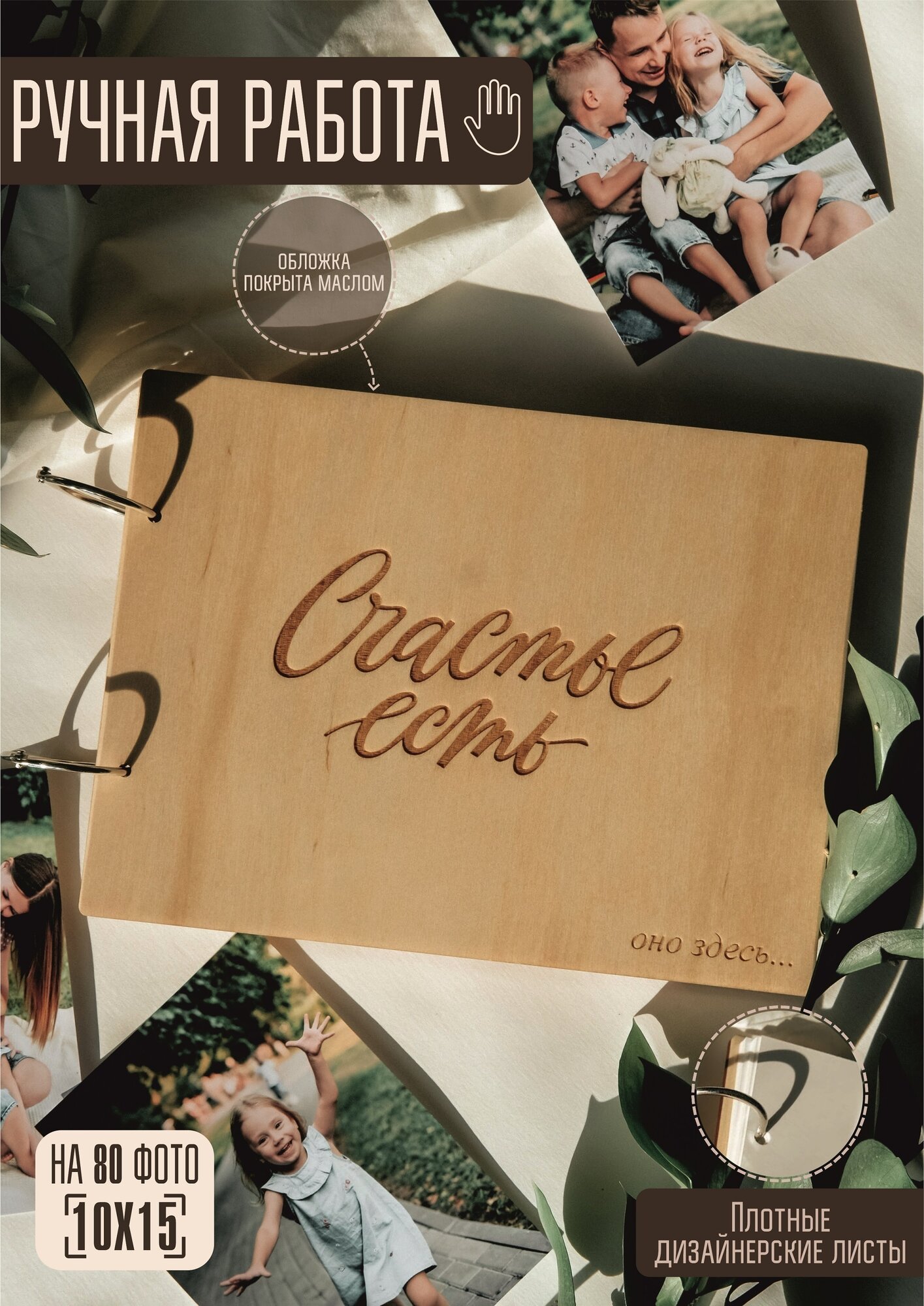 Купить Фотоальбом DunKsenWood «Счастье есть», бежевый, подарочный, на кольцах, 10×15 см с доставкой по всей России.