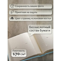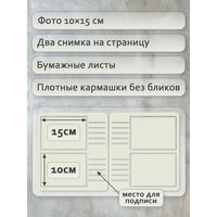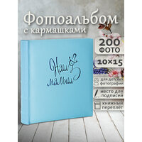 Альбом с кармашками для хранения 200 фотографий 10х15 см. Дизайн хорошо подходит для фотографий первых дней жизни ребенка, его первых шагов, первого дня рождения и так далее. В прозрачных кармашках фотографии надежно защищены от грязи, пыли, отпечатков пальцев. Со временем их можно легко поменять местами. Твердая обложка альбома обтянута искусственной кожей, в оконце на лицевой стороне обложки можно поставить личную фотографию. Белые бумажные страницы с местами для подписи скреплены методом книжного переплета, по 2 фотографии на странице.