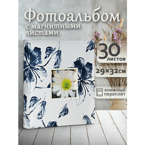 Альбом с 30 «магнитными» листами размера 29х32 см для фотографий разных форматов. Универсальный дизайн с красивыми цветами, хорошо подходит для семейных фото. В оконце на лицевой стороне обложки можно поставить вашу личную фотографию. Магнитный альбом позволяет быстро размещать фотографии, а также менять их расположение при необходимости. Поднимите пленку, разместите на странице фотографии и положите пленку обратно, аккуратно разгладив пузырьки воздуха. Твердая обложка альбома обтянута тканью, страницы cкреплены книжным переплетом.