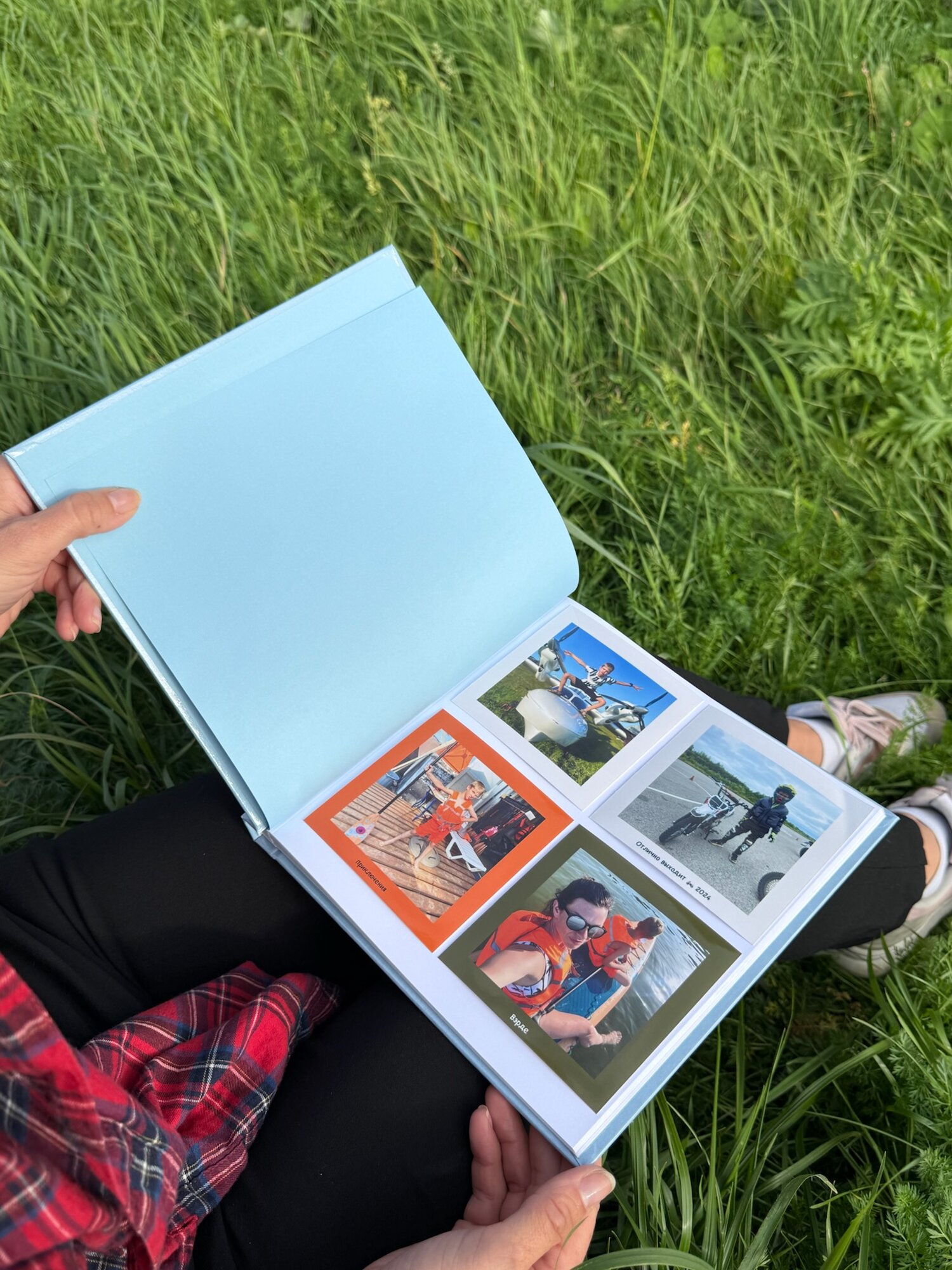 Можно подарить альбом в комплекте с фотографиями, или полностью заполненным, или заполнить несколько первых страниц. Или подарить как есть, с пустыми страничками, чтобы получатель сам заполнил свою историю.