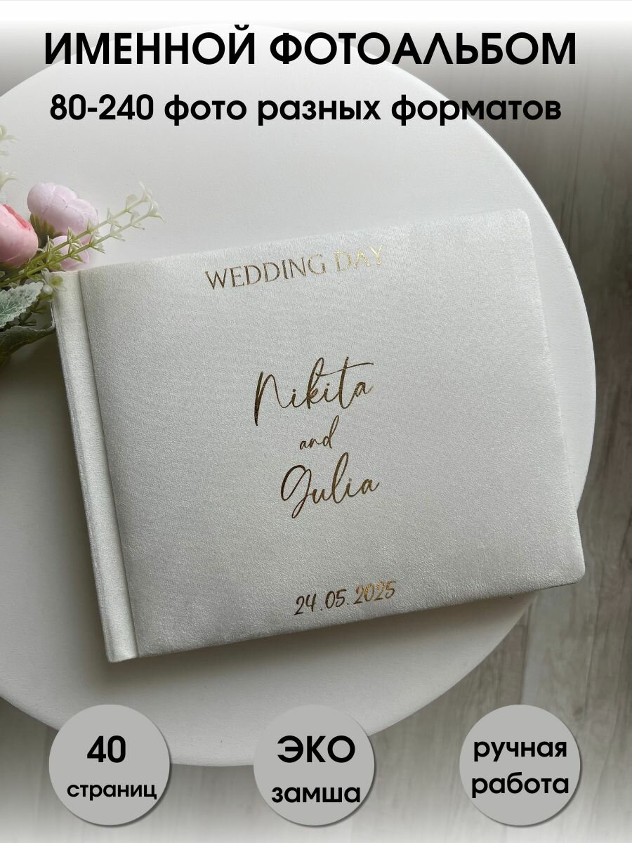 Купить Фотоальбом именной белый из искусственной замши прямоугольный 80-240 фото с доставкой по всей России.