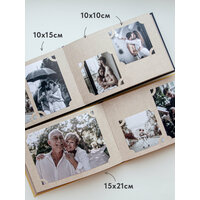 Одно из главных преимуществ альбома - это его обложка из ткани, которая выглядит дорого, стильно и презентабельно. Блок страниц альбома прошит вручную, что обеспечивает надежность и прочность конструкции. Благодаря этому, вы можете быть уверены, что ваши фотографии будут храниться на протяжении многих лет.