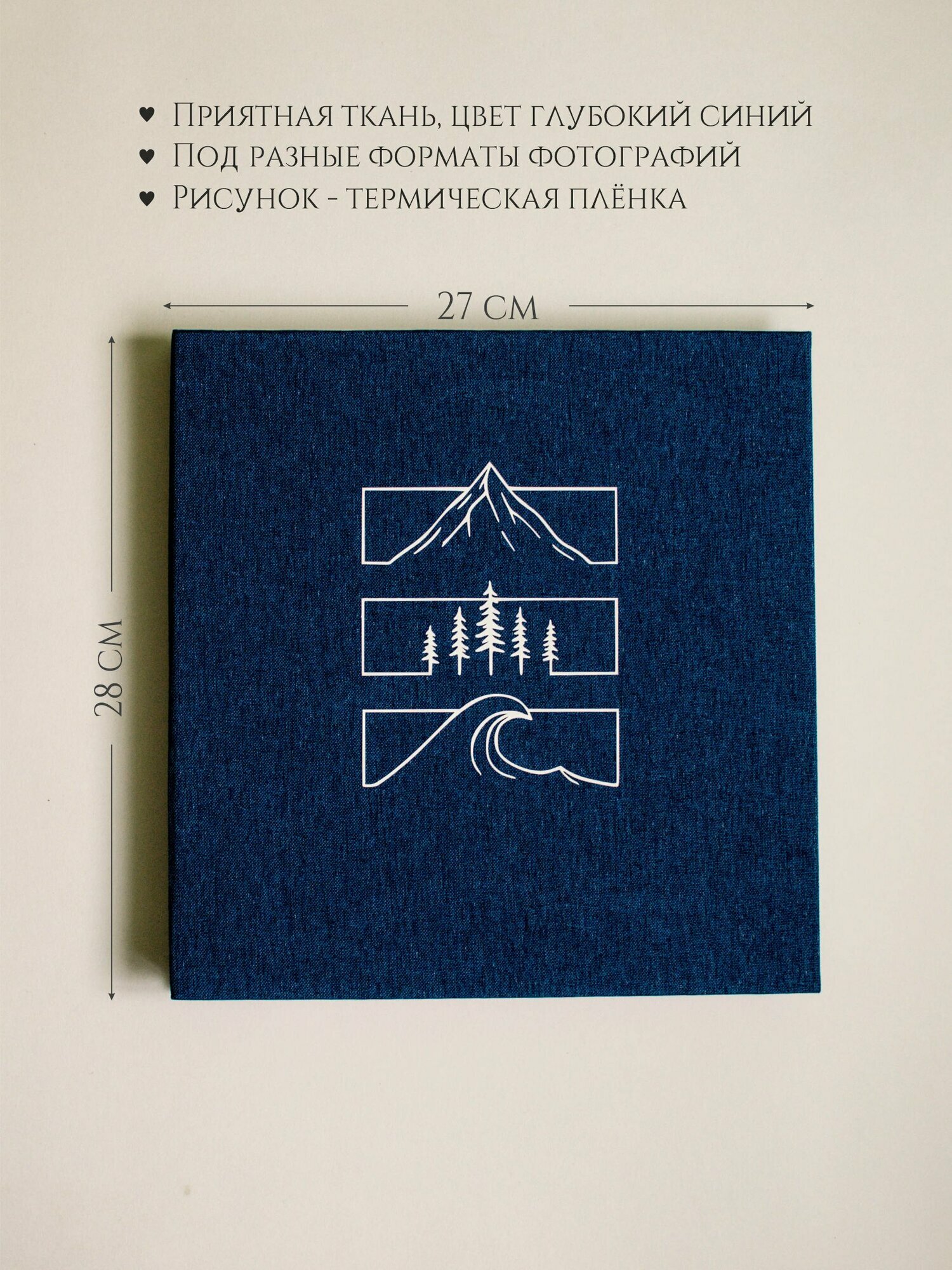 Фотоальбом магнитный 28*27 см на 20 листов глубокого синего цвета! Твердая тканевая обложка с минималистичным рисунком гор, природы и моря. Идеальный фотоальбом для путешествий, экспедиций, отпуска и походов! Для путешественников, скалолазов, альпинистов и любителей активного отдыха. Свободное планирование страниц благодаря магнитным листам подходит для разных форматов фото: стандартных 10х15 см (10*15 см), 21х15 см, 9х12 см, квадратных, instax, polaroid (примерно 120 фото 10х15 см). Надежный альбом для фотографий с твердой обложкой и стильным дизайном. Синий фотоальбом премиум-качества для ваших лучших воспоминаний о восхождениях, треккинге, кемпинге и исследованиях природы. Отлично подойдет в качестве подарка для ценителей походов, путешествий и активного отдыха.