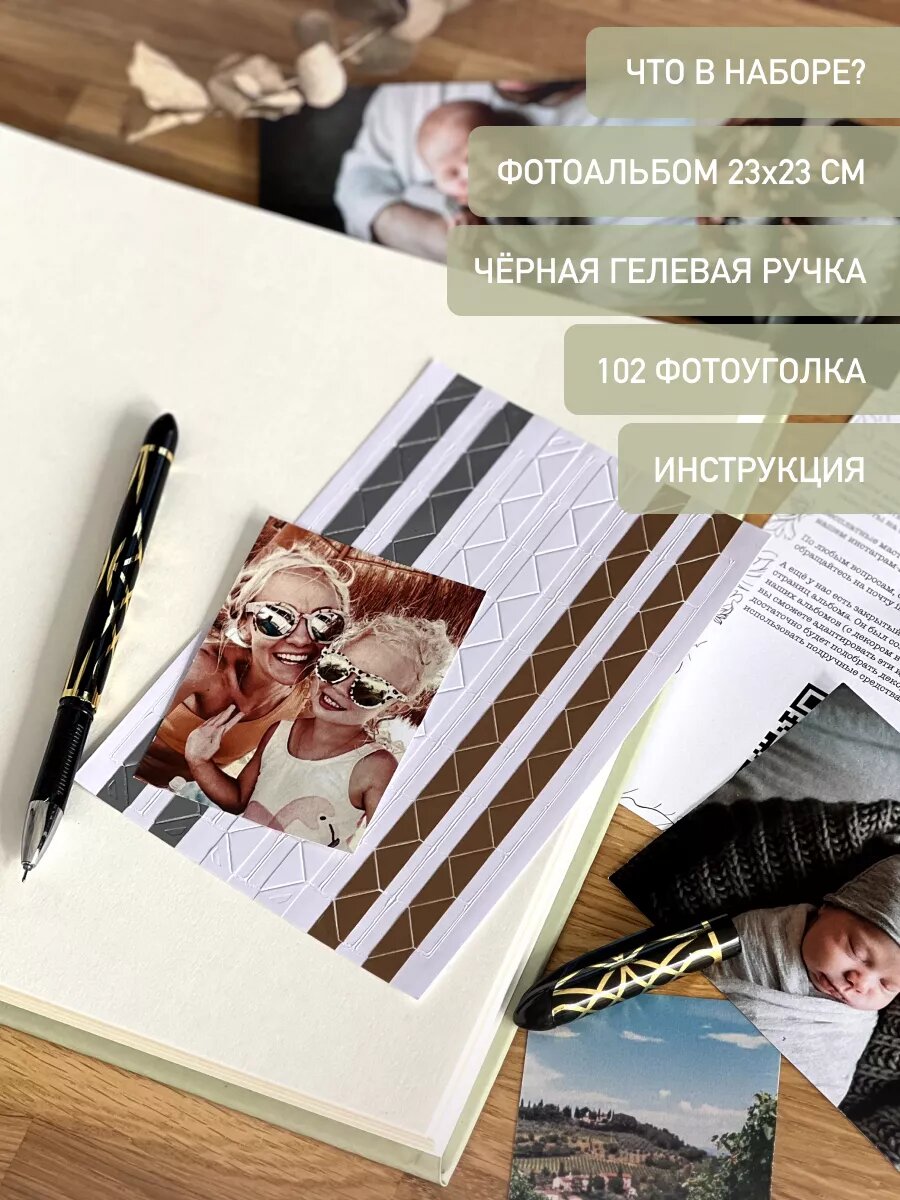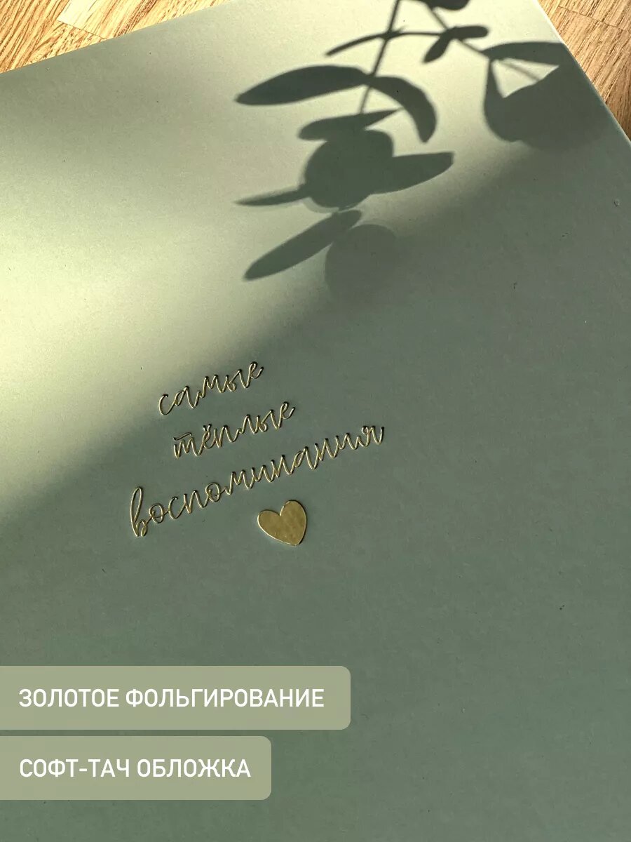 Наше время бесценно, а вместе с ним эмоции, которые хочется запомнить. Наши крафтовые фотоальбомы помогут вам в этом. Это не просто семейный альбом, а огромное пространство для воплощения вашего творчества и идей. Чтобы сохранить в памяти все воспоминания о разных событиях жизни мы создали серию: «Самые теплые воспоминания», которые отличаются цветом обложки. С альбомом идет лист фотоуголков (102 шт), черная гелевая ручка, инструкция, ссылка на наш ТГ-канал с идеями по заполнению. Пустые страницы цвета айвори позволят создать уникальную, яркую фотокнигу. Вы сможете легко и просто запечатлеть важные моменты, дополняя страницы подписями и рисунками. Твердая обложка с софт-тач покрытием сделана в виде книжного переплета на кольцах, дополнена золотым фольгированным тиснением на лицевой части. Внутри плотные бумажные листы 300 г/м2 для вклеивания фотоснимков разными способами. Первый лист - декоративная калька с цветочным принтом. Будет прекрасным подарком для влюбленных пар на свадьбу или любой другой праздник. Идеален как свадебная книга пожеланий, где гости могут оставлять свои поздравления и фотоснимки. Подойдет для выпускного альбома в детском саду, начальной школе. Можно использовать как скетчбук, для скрапбукинга, открыток или подарочный вариант для путешествий. Подходит как для маленьких фотокарточек 10х10 10x15, полароид, instax, инстакс, mini мини, так и 13х18 15х20, 15х21 20х23. Помещается до 200 штук фоток, в зависимости от их размера. Храните самые добрые воспоминания!