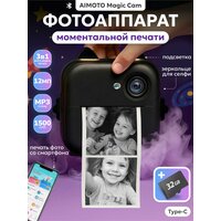 Купить Фотоаппарат мгновенной печати Aimoto MagicCam полароид + 3 рулона бумаги, карта памяти 32 Гб, с моментальной печатью, детский для девочек и мальчиков, черный с доставкой по всей России.