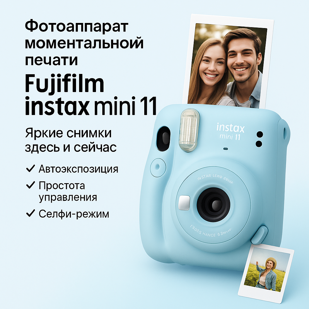 Фотоаппарат моментальной печати Fujifilm Instax Mini 11 голубой: сравнение цен, характеристики, фото, актуальное наличие и цены.