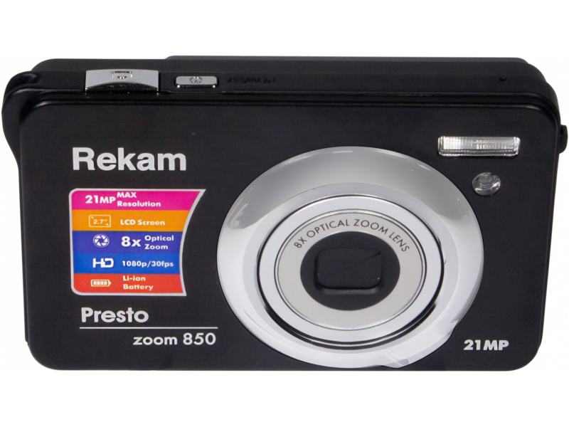 Фотоаппарат Rekam Presto zoom 850 bl черный 21Mpix 2.7″ 1080p SDHC/MMC CMOS IS el/Li-Ion: сравнение цен, характеристики, фото, актуальное наличие и цены.