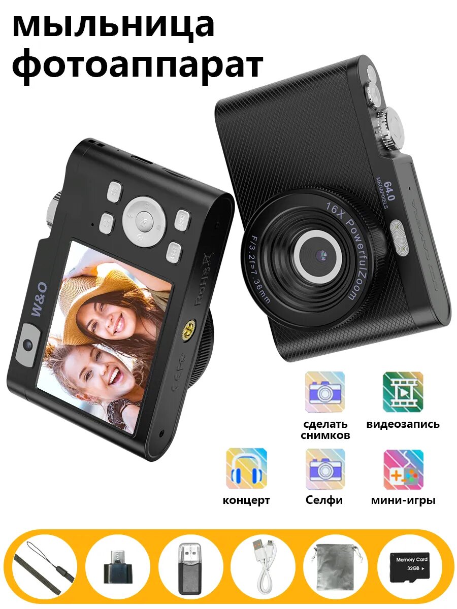 Купить Фотоаппарат W&O, матрица CMOS, 64 Мп, влагозащищённый корпус с доставкой по всей России.