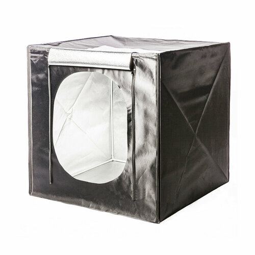 Модель имеет отверстие в верхней плоскости, что позволяет проводить съемку сверху. Подсветка осуществляется посредством двух LED-панелей, крепящихся внутри фотобокса.