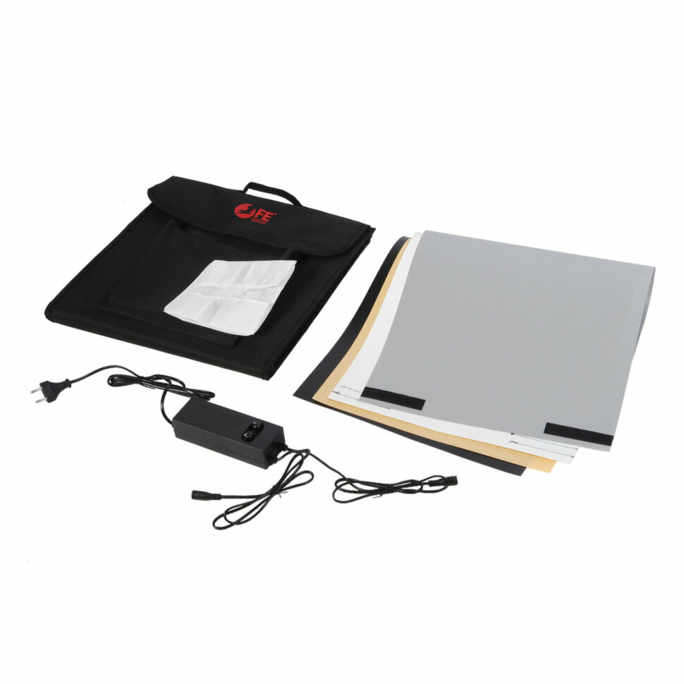 Складной быстросборный фотобокс Falcon Eyes Light Cube Z40 LED используется для получения бестеневой предметной или макро- фотографии в условиях офиса, студии или на выезде. Позволяет снимать средние и небольшие объекты для каталогов, интернет-магазинов, фотоблогов с минимальной постобработкой фотографий за счет равномерного освещения предметов переставляемыми светодиодными панелями.