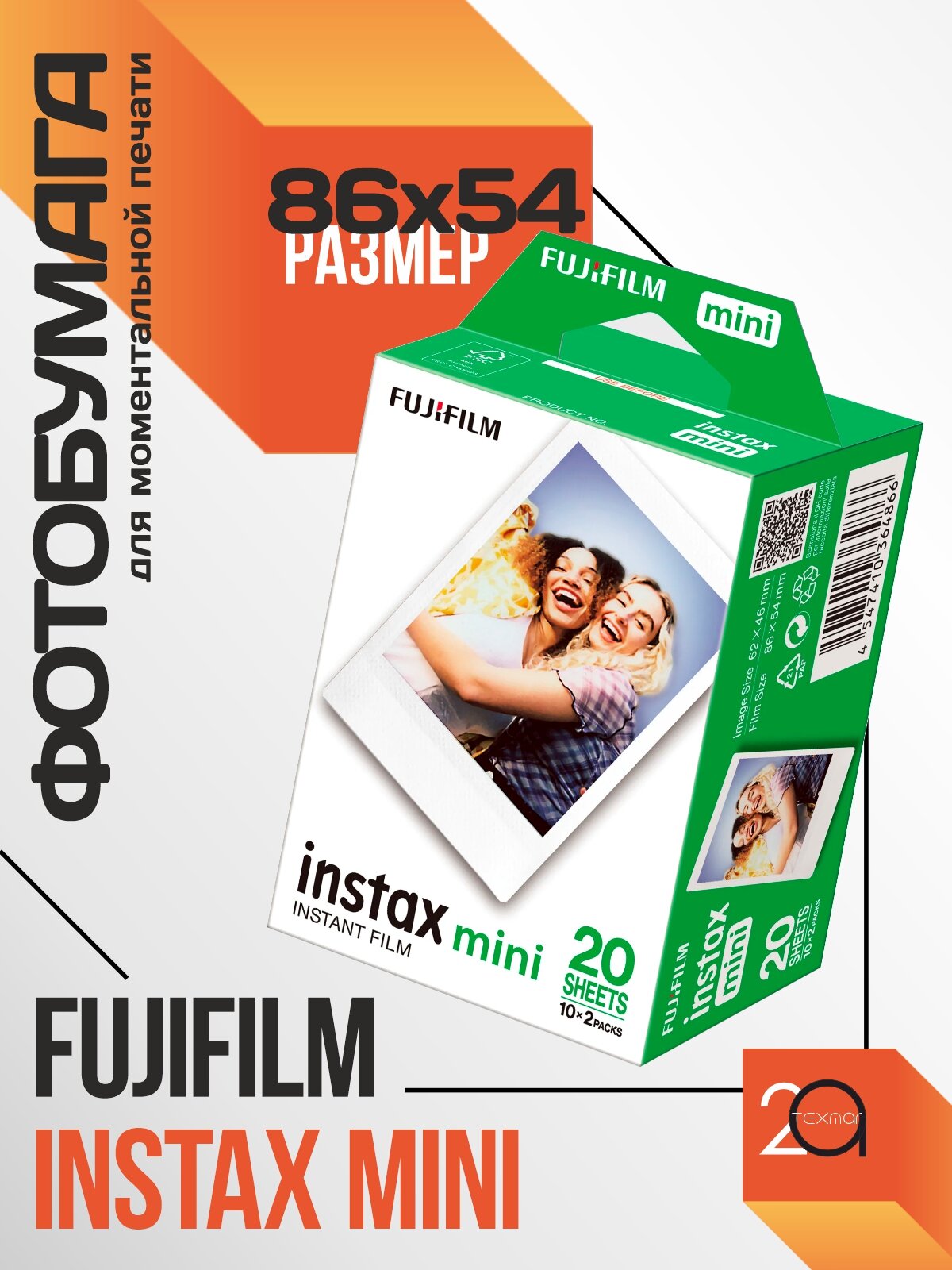 Купить Фотобумага Fujifilm Instax Mini /20 листов, 54 x 86 мм, ISO 800/ с доставкой по всей России.